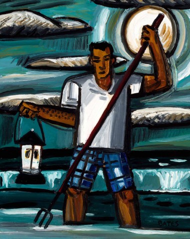 David Bates, an artist of remarkable technical facility and considerable art historical awareness, mixes classical art references with influences from Southern folk art in paintings, sculpture and reliefs that range from landscapes to portraits to still life. Originally fascinated with the light, water and wildlife of the lakes of Arkansas and particularly the Texas Gulf Coast David Bates compositions are done in a direct, concise manner that is subtly complex. The artist captures both the humor and pathos of his subject matter. David Bates has achieved a national reputation for the visual sophistication and emotional strength of his art.