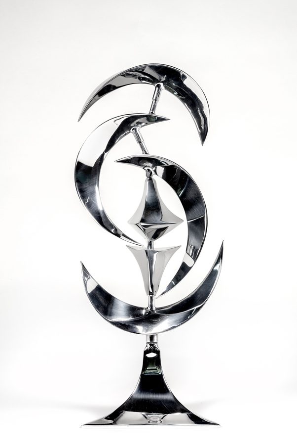 Lin Emery is an internationally recognized sculptor. Her kinetic sculptures produce constantly changing relationships through the ever-varying configuration of their parts as they interpret the lyrical beauty of the natural world. Lin Emery’s forms are abstracted from nature and give visible form to the energies moving through nature.