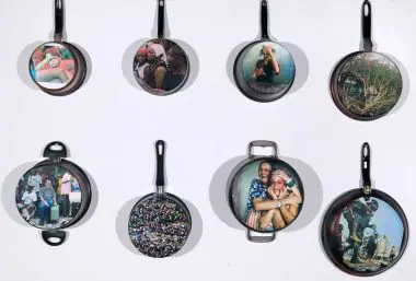 Luis Cruz Azaceta, At the Bottom of the Pot (detail), 2007. Archival prints on found pots. 96 x 108 x 10 inches.