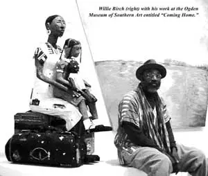 After nearly two decades in the North, Willie Birch returned home to New Orleans. Since his return over two years ago, Birch has been working on a body of work that reflects the people of the South and their customs. This work has been shown at the Southeastern Center for Contemporary Art in North Carolina, the Luise Ross Gallery in New York, and last May at the Arthur Roger Gallery in New Orleans in an exhibit entitled “In Search of Heroes, Part II.”