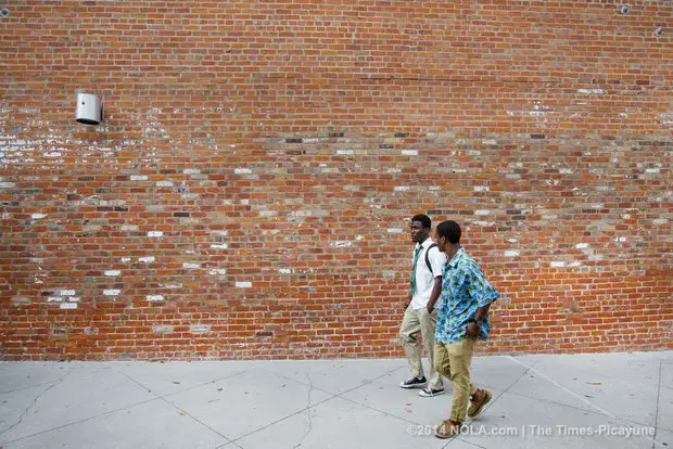 Leonard Galmon, center, a NOCCA and Cohen College Prep senior who grew up around the C.J. Peete housing projects, will be going to Yale next year. He walks with his best friend DeRondice Reese, right, at the end-of-year art show at NOCCA on Thursday, May 8, 2014. (Photo by Chris Granger, Nola.com | The Times-Picayune)
