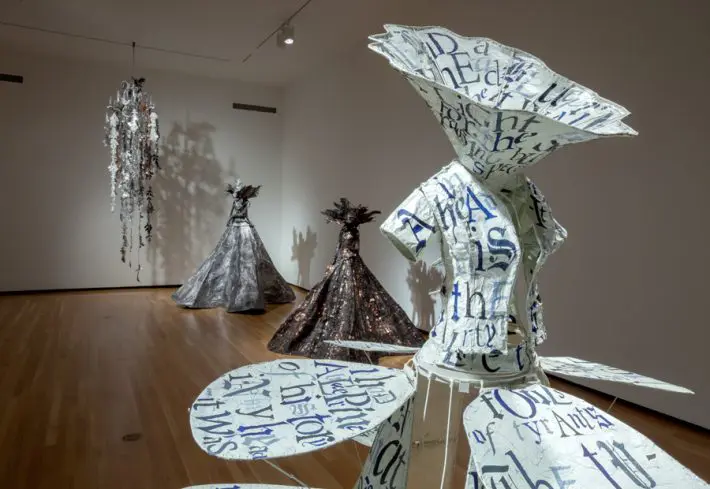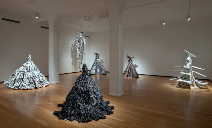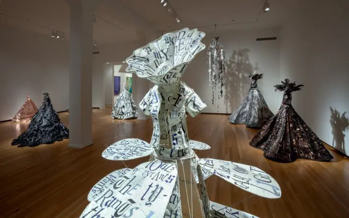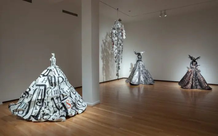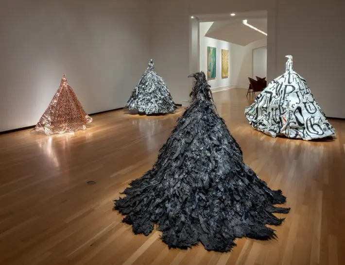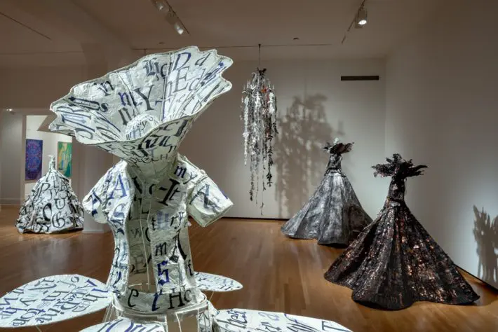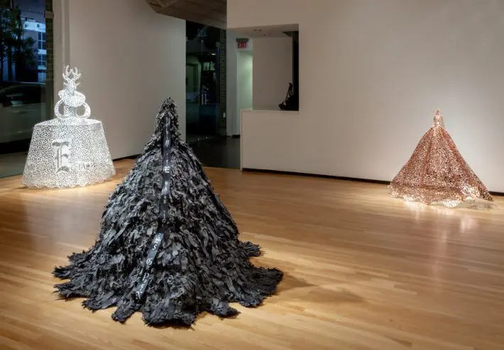 Lesley Dill: Beautiful Dirt – Ballgowns of Lightness & Dark October 8, 2014 October 2014 Exhibition at Arthur Roger Gallery Photography: Michael Smith