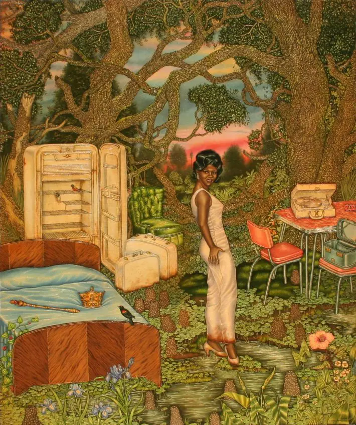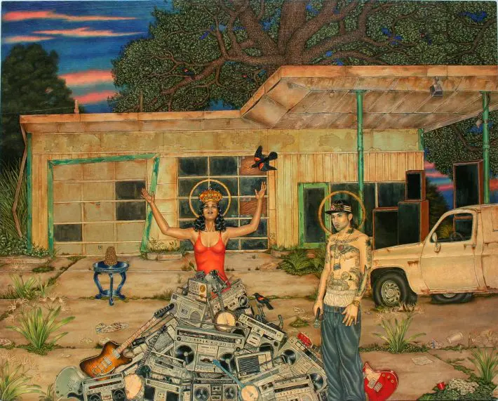 Louisiana master Douglas Bourgeois‘ soul-satisfying paintings of pop stars and passionate music lovers may be the No. 1 crowd-pleaser at New Orleans’ international art festival, Prospect.3. The mini-retrospective of intimate, meticulous, more-or-less realistic oils are a traditional touchstone among the otherwise avant-garde exhibits at the Contemporary Arts Center.