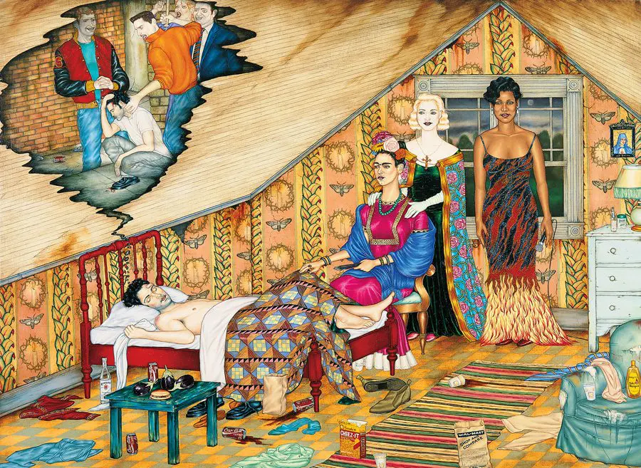 Well, the truest answer would be I wouldn’t define my art unless forced. But to give people an idea of what it is, I usually say it’s figurative -depicts humans-, narrative -some sort of unspoken Story or situation-, naïvely real -there is some dimensionality but the space is condensed, no shadows or accuracy of perspective.