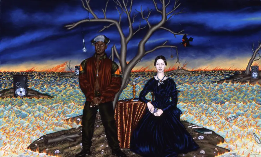 Two Poets on an Island depicts American poetess Emily Dickinson and New York-based rapper Rakim -Bourgeois used to listen to his music.