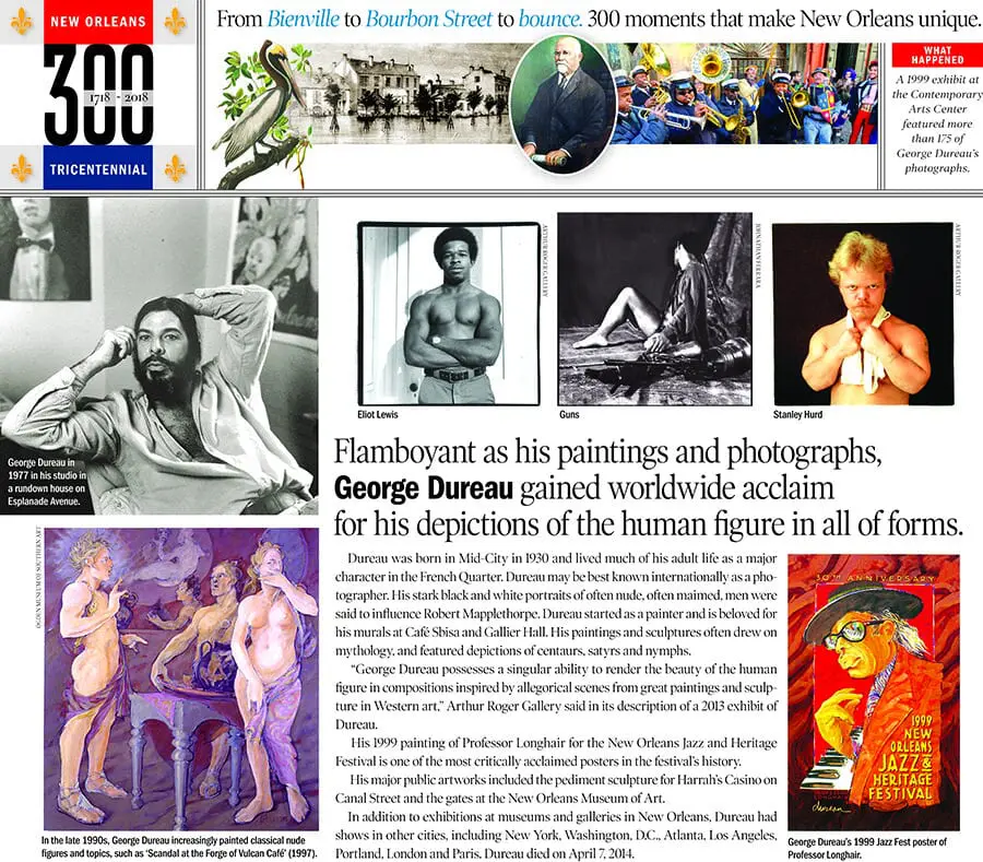 “300 unique New Orleans moments: George Dureau’s ‘Black 1973-1986’ tours through country, gains national acclaim,” The Advocate August 9, 2017 Click here to read the article at theadvocate.com.