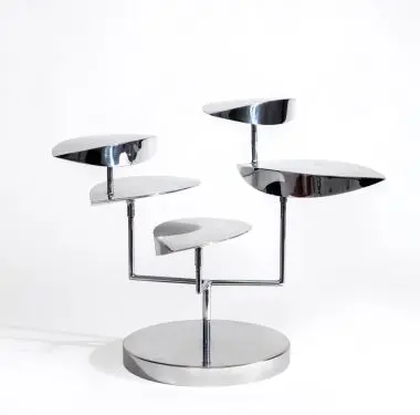 Lin Emery: Conversation. Polished Aluminum, 6 3/4 x 19 1/2 (orbit) inches, 10 3/4 inches (base). Photo courtesy Arthur Roger Gallery, New Orleans, LA.