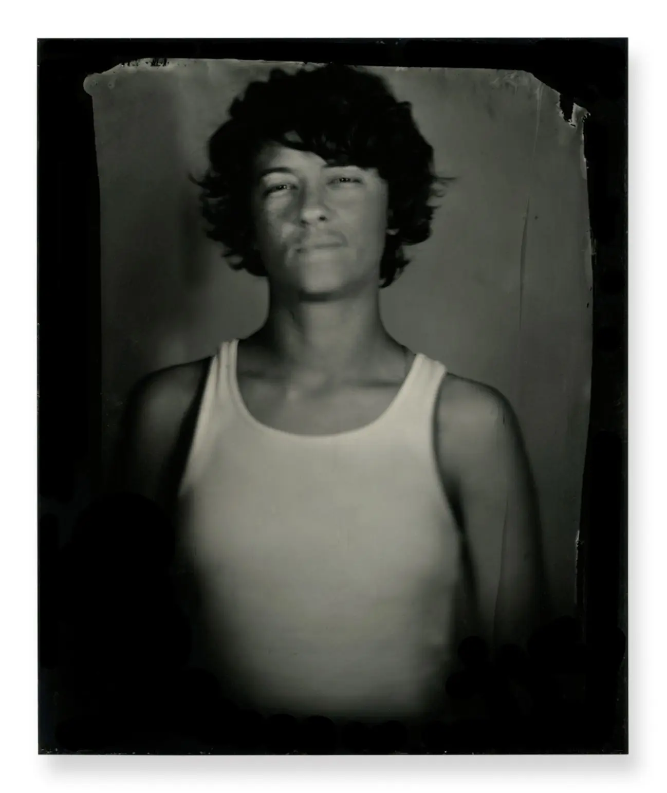 Meg Turner (American, b.1985) combines intimate portraiture with a study of printmaking and economics. Inviting friends and strangers into elaborately created sets, Turner uses photography, installation, and humor to harness collective longing and ecstatic exhibitionism. Hand-based processes such as sign painting, silkscreen, and sewing align neatly with Turner’s use of wet collodion photography as her preferred mode of image capturing. Exquisitely slow and highly collaborative, this antique method of photography brings the subject into the creative process, and intimacy is reflected in Turner’s choice of capturing her close community through a maximalist queer lens.