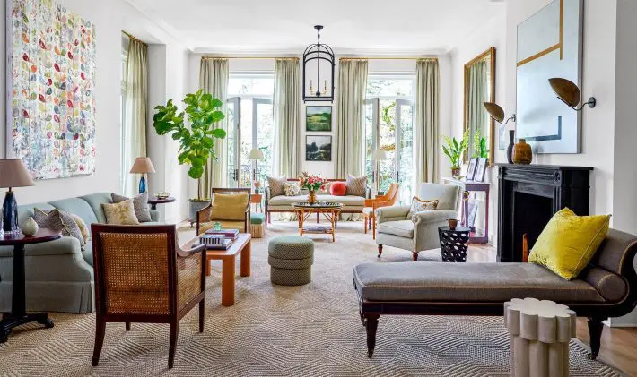 To design the interiors—counting the terraces, the apartment encompasses 4,000 square feet—the Isaacsons called upon Brockschmidt & Coleman, whose principals, Courtney Coleman and Bill Brockschmidt, are architects raised in Mississippi and Virginia, respectively; they have been business partners for more than 20 years and now split their practice between New York and New Orleans. The firm has plenty of experience with literary Southerners, having designed homes in both New Orleans and Greenville, Mississippi, for the late writer and bon vivant Julia Reed, as well as for the renowned historian Jon Meacham and his wife, Keith, who live in Nashville.