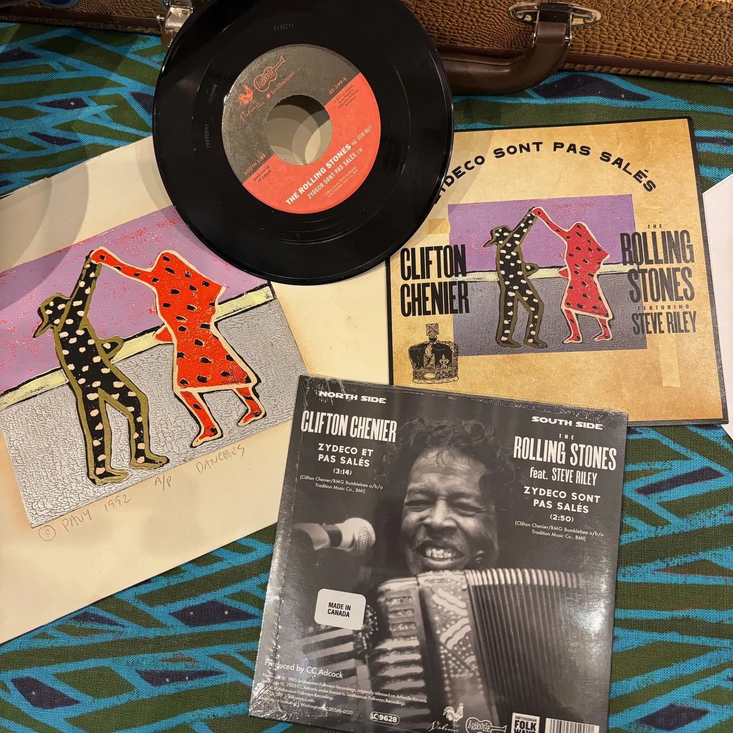 Smithsonian Folkways Recordings is releasing a 7-inch vinyl of the Rolling Stones and Steve Riley performing Clifton Chenier’s “Zydeco Sont Pas Sale,” as part of a 100th anniversary tribute to the King of Zydeco. The album cover features work by Lafayette artist Francis Pavy, and the release date is June 25