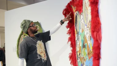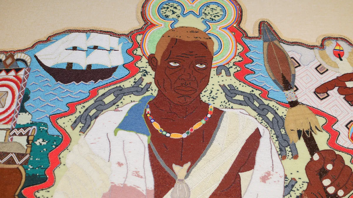 Demond Melancon writes the history of his people in glass beads. Intricate and colorful portraits, masks, and Mardi Gras suits by the New Orleanian are the subject of Demond Melancon: As Any Means Are Necessary, at the African American Museum in Philadelphia.