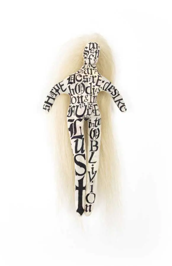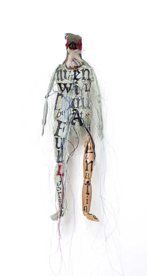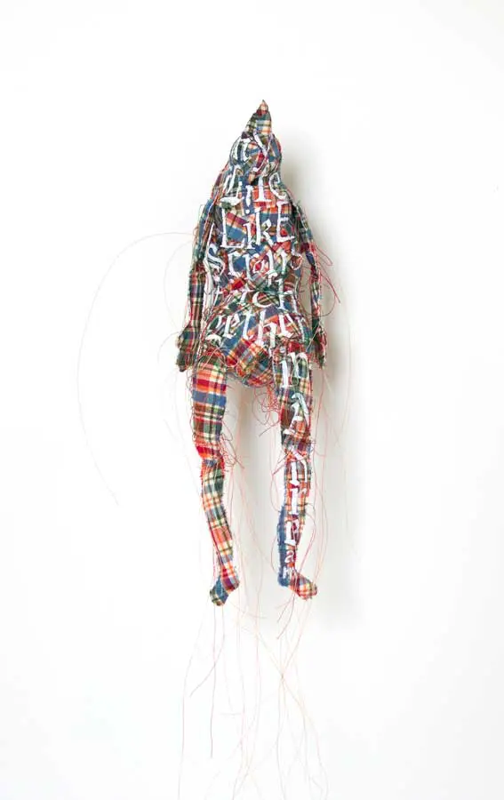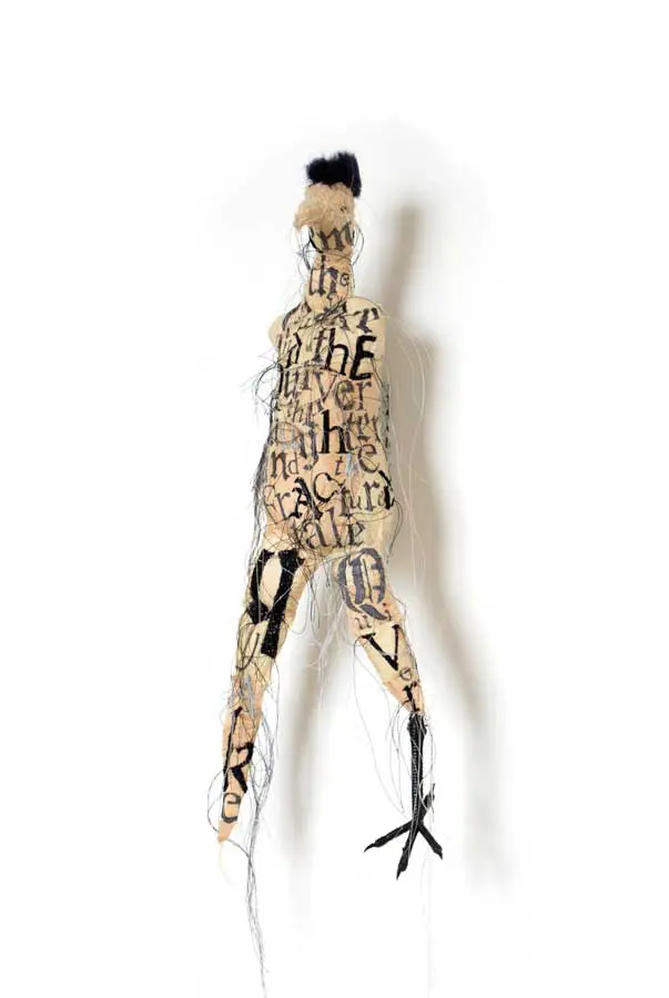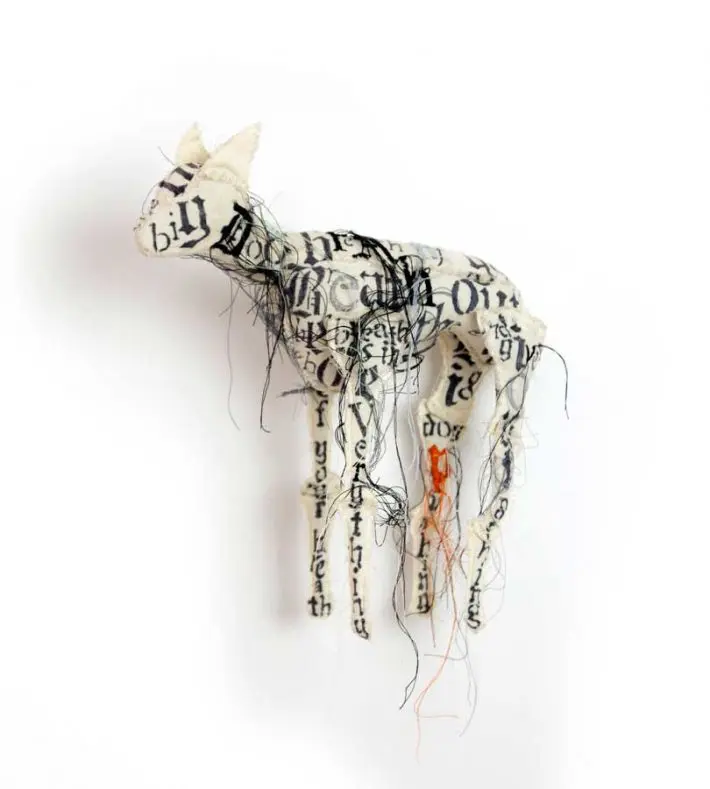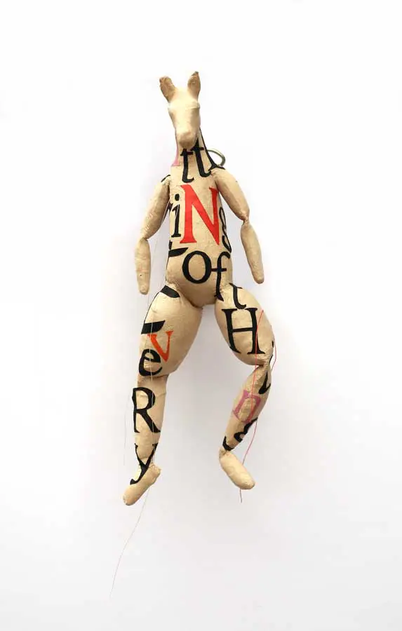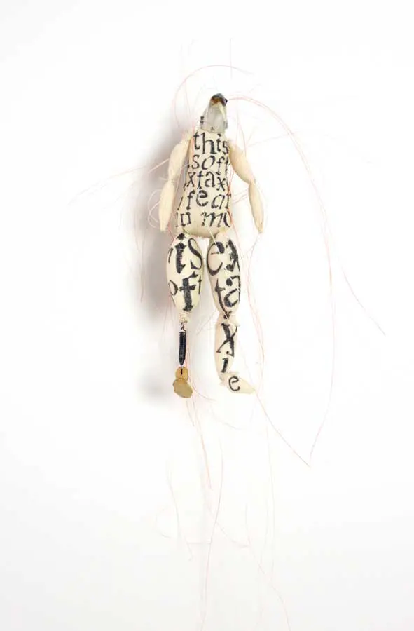 Lesley Dill at Art Miami 2016 Flying Black Bird Man With White Letters2013Feathers, fabric, paper18 1/4 x 18 x 4 1/2 inches“Far away in the frontier Bird Men rustle feathers” -Tom Sleigh"/> Black Bird Man With White Letters2013Thread, horsehair, fur, fabric13 x 6 x 2 inches“And in Us Wee Find The Eagle and the Dove” -John Donne"/> Small Red Bird With Wooden Leg2016Fabric, thread, feathers, ink, metal, wood8 x 3 x 1 inches“Mysteries Dazzling” -John Donne"/> Red Bird Man With Furred Thigh2013Fabric, fur, thread12 1/4 x 5 1/2 x 3 1/2 inches“Their extaxie doth unperplex” -John Donne"/> Red-Orange Bird With Black Hair2013Fabric, thread15 x 5 1/2 x 3 1/2 inches“In mee the flame was never more alive” -John Donne"/> Copper Circulatory System2013Copper13 1/2 x 5 1/2 x 2 1/2 inches"/> Wood Sculpture With Gold Star2013Ink, gold leaf, thread, wire, wood14 x 3 1/2 x 2 inches“I had a daily bliss” -Emily Dickinson“Sudden inner light” -Pablo Neruda"/> “Poetry” Wood Sculpture2013Ink, thread, wire, wood14 x 3 1/2 x 2 inches“And it was at that age poetry arrived in search of me” -Pablo Neruda“For me the story line hovers above my head” -Tom Sleigh"/> Teeny Beige Sculpture With Wooden Foot2013Ink, horsehair, feathers, plastic wood, metal, fabric6 1/2 x 2 1/2 x 1 1/2 inches“This soft extaxie I fear no more” -John Donne"/> Small Bird With Breasts and Backpack2016Fabric, thread, feathers, ink, plastic8 x 3 x 3 inches”There seemed to rise a tune from miniature creatures” -Tom Sleigh"/> Scroll Bird Sculpture2016Fabric, thread, plastic, ink13 x 3 x 3 1/2 inches“Bright action with bright essence”"/> Sage Green Bird With Feathered Head2013Fabric, horsehair, feathers, wood, metal, plastic11 1/2 x 4 x 3 inches“When will thou be at full great lunatique” -John Donne"/> Red and Blue Plaid Sculpture2013Paint, thread, horsehair, fabric12 x 3 1/2 x 3 inches“My life like scraps stitched together in a dream” -Tom Sleigh"/> Man With Outstretched Arm and Paper Head2013Threads, paper, fabric9 1/4 x 6 x 2 1/2 inches“In mee the flame was never more alive” -John Donne"/> Lust Doll With Blonde Hair2013Ink, thread, fabric, horsehair16 1/2 x 7 1/2 x 4 1/2 inches“To satisfy the sharpe desire” -John Donne“Bodies longing to be fucked into oblivion” -Tom Sleigh“Lust” -Lesley Dill“Thy nakedness and bareness to enjoy” -John Donne“There are days the whole world gets down on all 4’s…” -Tom Sleigh"/> Lust Doll With Black Hair2013Ink, thread, fabric, horsehair16 x 8 x 4 inchesSlut” -Lesley Dill“In ranke & itchie lust” -John Donne“If I could only see you naked once” -Kafka“To satisfy the sharpe desire” -John Donne"/> Hairy Man #22013Ink, thread, fabric15 x 8 x 1 inches“Much Madness is divinest sense…the starkest madness” -Emily Dickinson"/> Hairy Man #12013Fabric, thread, horsehair14 x 19 x 2 inches“Much Madness” -Emily Dickinson"/> Beige Bird With Black Hair2013Horsehair, thread, fur, plastic, fabric17 x 6 x 2 1/2 inches“I’m the quake and the short-lived quiver, the laughter and the fractured tale.” -Tom Sleigh"/> Beige Big Butt Bird #22013Ink, thread, horsehair, fabric12 1/2 x 3 1/2 x 4 inches“I’m the quake & the short-lived quiver, the laughter and the fractured tale” -Tom Sleigh"/> Dog #1 (The Beasts)2013Ink, thread, horsehair, poly-fil, fabric8 1/2 x 11 x 4 1/2 inches”The Beasts filled the woods avid & quick” -Dante“I’m creature stay away from me” -Tom Sleigh"/> Dog #2 (The Big Dog)2013Ink, thread, horsehair, poly-fil, fabric9 x 10 x 3 1/2 inches“The big dog’s pushing every breath of your breath out beyond the event horizon” -Tom Sleigh"/> Dog #4 (I Have Given)2013Ink, thread, horsehair, poly-fil, fabric8 x 10 1/2 x 3 inches“I have given my whole life to words chewed this dog hunger into a long meal” -Salvador Espriu"/> Poetry Horse2011Ink, plastic, fabric20 x 2 1/2 x 6 inches“And it was at that age of poetry arrived in search of me” -Pablo Neruda"/> Paper-Covered Beige Horse2013Fabric, thread, hand-made paper pulp (Dieu Donne)17 x 5 x 5 1/2 inches“In Mee the Flame was Never More Alive” -John Donne"/> Taupe Horse Sculpture2011Paper, fabric, poly stuffing, plastic thread, copper mount15 x 7 x 3 1/4 inches“Little King of Everything.” -John Donne"/> Tiny Black Horse Sculpture2013Horsehair, thread, plastic, fabric9 x 4 x 1 1/2 inches“Little King of Everything.” -John Donne"/>