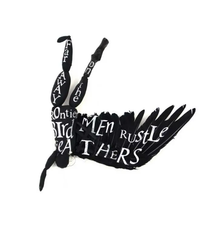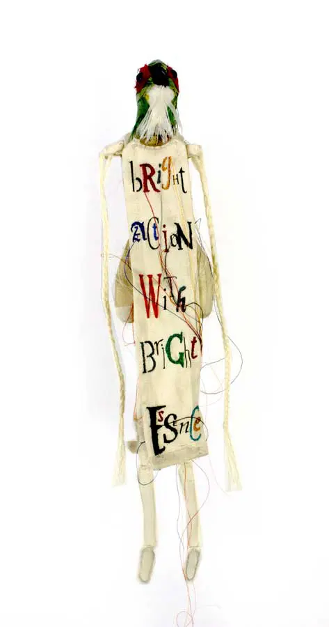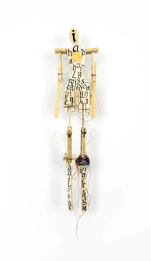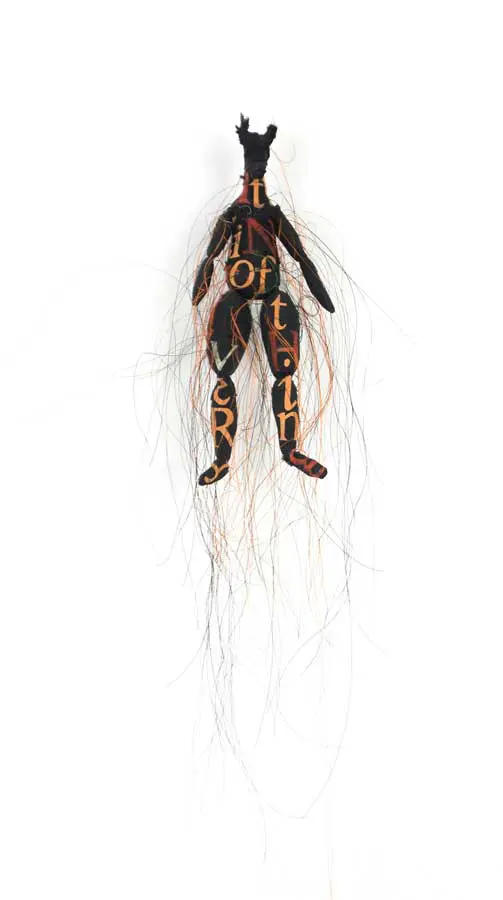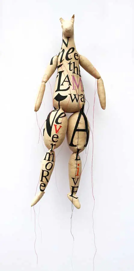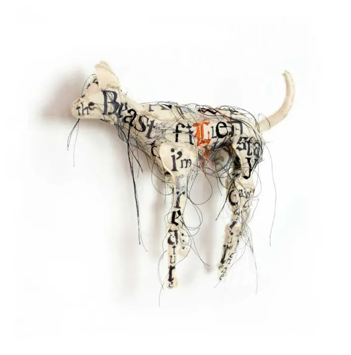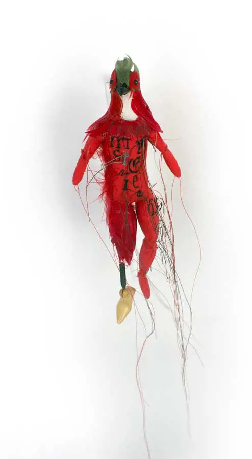 Lesley Dill at Art Miami 2016 Flying Black Bird Man With White Letters2013Feathers, fabric, paper18 1/4 x 18 x 4 1/2 inches“Far away in the frontier Bird Men rustle feathers” -Tom Sleigh"/> Black Bird Man With White Letters2013Thread, horsehair, fur, fabric13 x 6 x 2 inches“And in Us Wee Find The Eagle and the Dove” -John Donne"/> Small Red Bird With Wooden Leg2016Fabric, thread, feathers, ink, metal, wood8 x 3 x 1 inches“Mysteries Dazzling” -John Donne"/> Red Bird Man With Furred Thigh2013Fabric, fur, thread12 1/4 x 5 1/2 x 3 1/2 inches“Their extaxie doth unperplex” -John Donne"/> Red-Orange Bird With Black Hair2013Fabric, thread15 x 5 1/2 x 3 1/2 inches“In mee the flame was never more alive” -John Donne"/> Copper Circulatory System2013Copper13 1/2 x 5 1/2 x 2 1/2 inches"/> Wood Sculpture With Gold Star2013Ink, gold leaf, thread, wire, wood14 x 3 1/2 x 2 inches“I had a daily bliss” -Emily Dickinson“Sudden inner light” -Pablo Neruda"/> “Poetry” Wood Sculpture2013Ink, thread, wire, wood14 x 3 1/2 x 2 inches“And it was at that age poetry arrived in search of me” -Pablo Neruda“For me the story line hovers above my head” -Tom Sleigh"/> Teeny Beige Sculpture With Wooden Foot2013Ink, horsehair, feathers, plastic wood, metal, fabric6 1/2 x 2 1/2 x 1 1/2 inches“This soft extaxie I fear no more” -John Donne"/> Small Bird With Breasts and Backpack2016Fabric, thread, feathers, ink, plastic8 x 3 x 3 inches”There seemed to rise a tune from miniature creatures” -Tom Sleigh"/> Scroll Bird Sculpture2016Fabric, thread, plastic, ink13 x 3 x 3 1/2 inches“Bright action with bright essence”"/> Sage Green Bird With Feathered Head2013Fabric, horsehair, feathers, wood, metal, plastic11 1/2 x 4 x 3 inches“When will thou be at full great lunatique” -John Donne"/> Red and Blue Plaid Sculpture2013Paint, thread, horsehair, fabric12 x 3 1/2 x 3 inches“My life like scraps stitched together in a dream” -Tom Sleigh"/> Man With Outstretched Arm and Paper Head2013Threads, paper, fabric9 1/4 x 6 x 2 1/2 inches“In mee the flame was never more alive” -John Donne"/> Lust Doll With Blonde Hair2013Ink, thread, fabric, horsehair16 1/2 x 7 1/2 x 4 1/2 inches“To satisfy the sharpe desire” -John Donne“Bodies longing to be fucked into oblivion” -Tom Sleigh“Lust” -Lesley Dill“Thy nakedness and bareness to enjoy” -John Donne“There are days the whole world gets down on all 4’s…” -Tom Sleigh"/> Lust Doll With Black Hair2013Ink, thread, fabric, horsehair16 x 8 x 4 inchesSlut” -Lesley Dill“In ranke & itchie lust” -John Donne“If I could only see you naked once” -Kafka“To satisfy the sharpe desire” -John Donne"/> Hairy Man #22013Ink, thread, fabric15 x 8 x 1 inches“Much Madness is divinest sense…the starkest madness” -Emily Dickinson"/> Hairy Man #12013Fabric, thread, horsehair14 x 19 x 2 inches“Much Madness” -Emily Dickinson"/> Beige Bird With Black Hair2013Horsehair, thread, fur, plastic, fabric17 x 6 x 2 1/2 inches“I’m the quake and the short-lived quiver, the laughter and the fractured tale.” -Tom Sleigh"/> Beige Big Butt Bird #22013Ink, thread, horsehair, fabric12 1/2 x 3 1/2 x 4 inches“I’m the quake & the short-lived quiver, the laughter and the fractured tale” -Tom Sleigh"/> Dog #1 (The Beasts)2013Ink, thread, horsehair, poly-fil, fabric8 1/2 x 11 x 4 1/2 inches”The Beasts filled the woods avid & quick” -Dante“I’m creature stay away from me” -Tom Sleigh"/> Dog #2 (The Big Dog)2013Ink, thread, horsehair, poly-fil, fabric9 x 10 x 3 1/2 inches“The big dog’s pushing every breath of your breath out beyond the event horizon” -Tom Sleigh"/> Dog #4 (I Have Given)2013Ink, thread, horsehair, poly-fil, fabric8 x 10 1/2 x 3 inches“I have given my whole life to words chewed this dog hunger into a long meal” -Salvador Espriu"/> Poetry Horse2011Ink, plastic, fabric20 x 2 1/2 x 6 inches“And it was at that age of poetry arrived in search of me” -Pablo Neruda"/> Paper-Covered Beige Horse2013Fabric, thread, hand-made paper pulp (Dieu Donne)17 x 5 x 5 1/2 inches“In Mee the Flame was Never More Alive” -John Donne"/> Taupe Horse Sculpture2011Paper, fabric, poly stuffing, plastic thread, copper mount15 x 7 x 3 1/4 inches“Little King of Everything.” -John Donne"/> Tiny Black Horse Sculpture2013Horsehair, thread, plastic, fabric9 x 4 x 1 1/2 inches“Little King of Everything.” -John Donne"/>