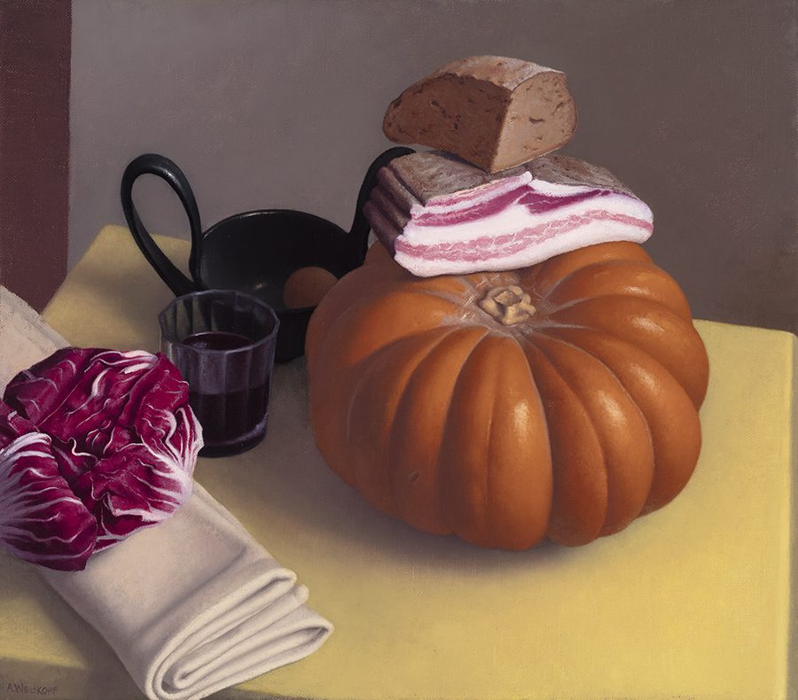 Amy Weiskopf, who is known primarily as a still life painter, values the close intimate space of the familiar tabletop. Her compositions are deliberate yet spirited and invite the viewer to consider the relationship of the subjects to each other and to the whole. Her mastery of color and tonality is profoundly apparent in her work.