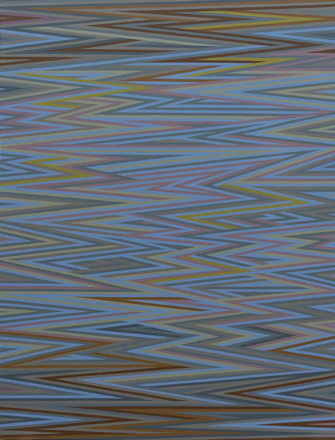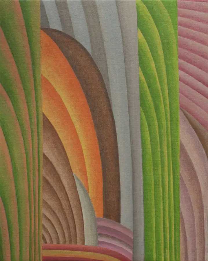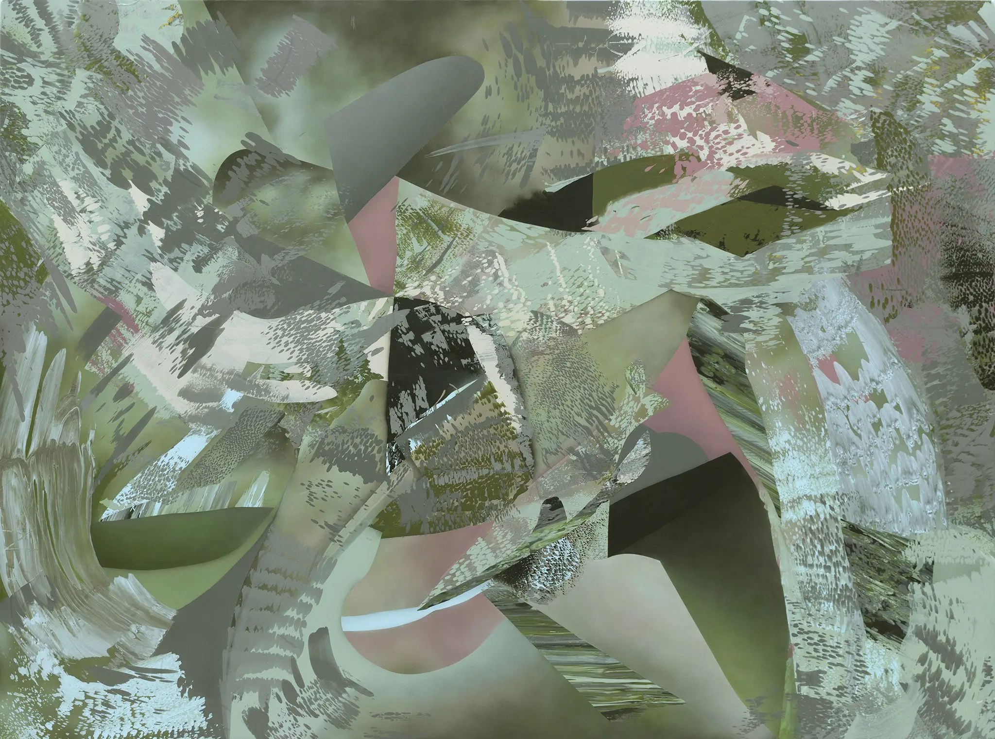 Reoccurring themes of technology and the manipulation of nature can be found in Brian Guidry’s paintings, which range visually from compressed lines of color to abstract eruptions. The artist synthesizes color, sound and texture to create “digitized” or “dissolved landscapes,” using a specific color palette sampled from a variety of natural sources. The injection of these “natural” colors into geometric planes and constructions creates shapes and voids suggestive of portals or slips in time, leading the viewer over the precipice of the normal, into the magical realism of the uncanny, peculiar and quantum.