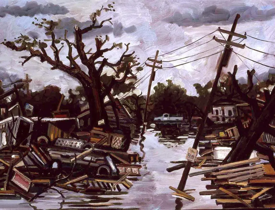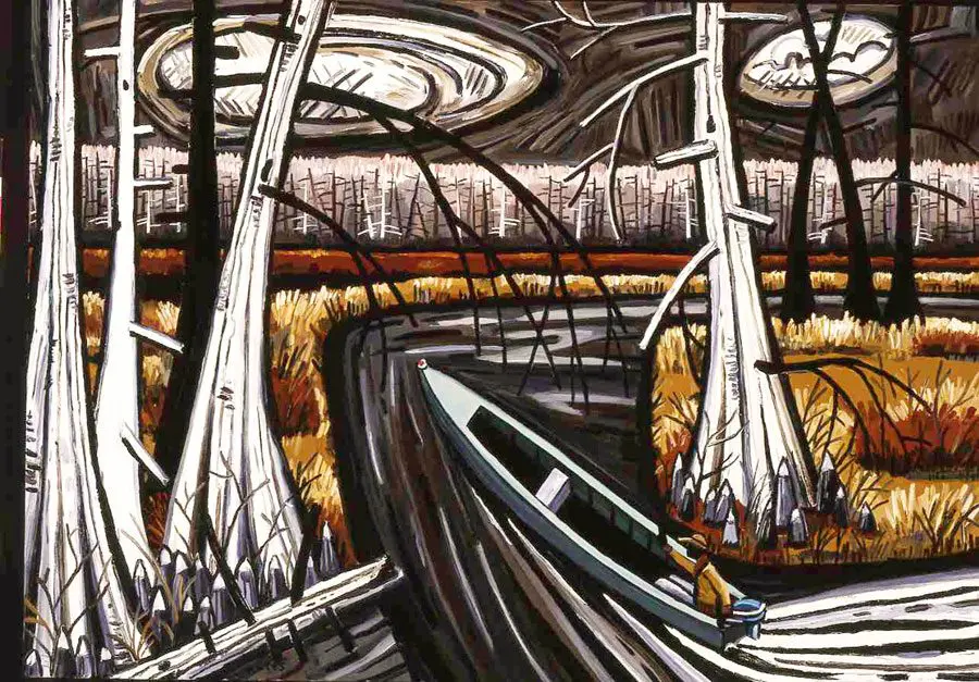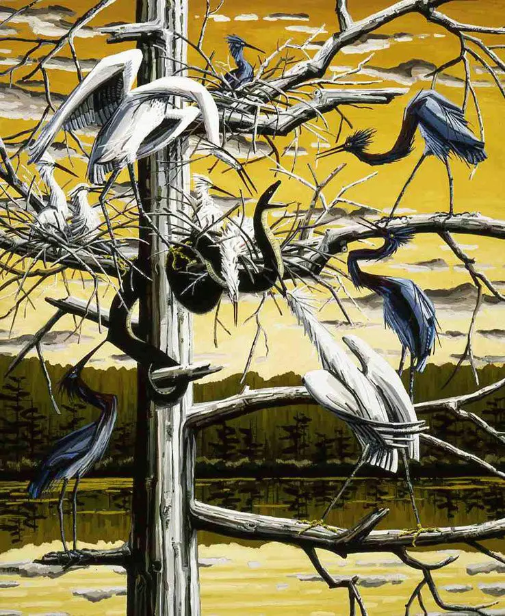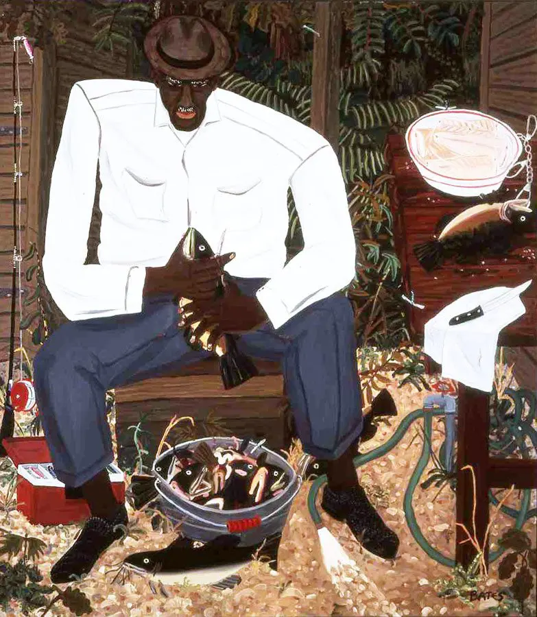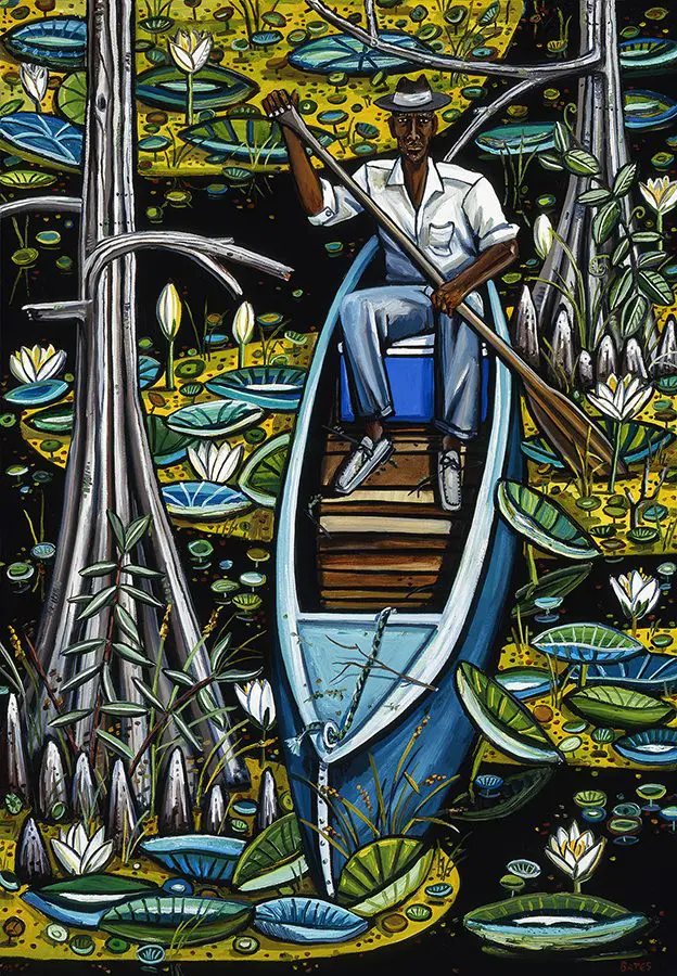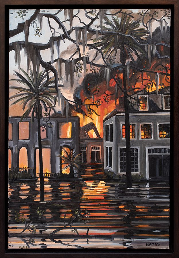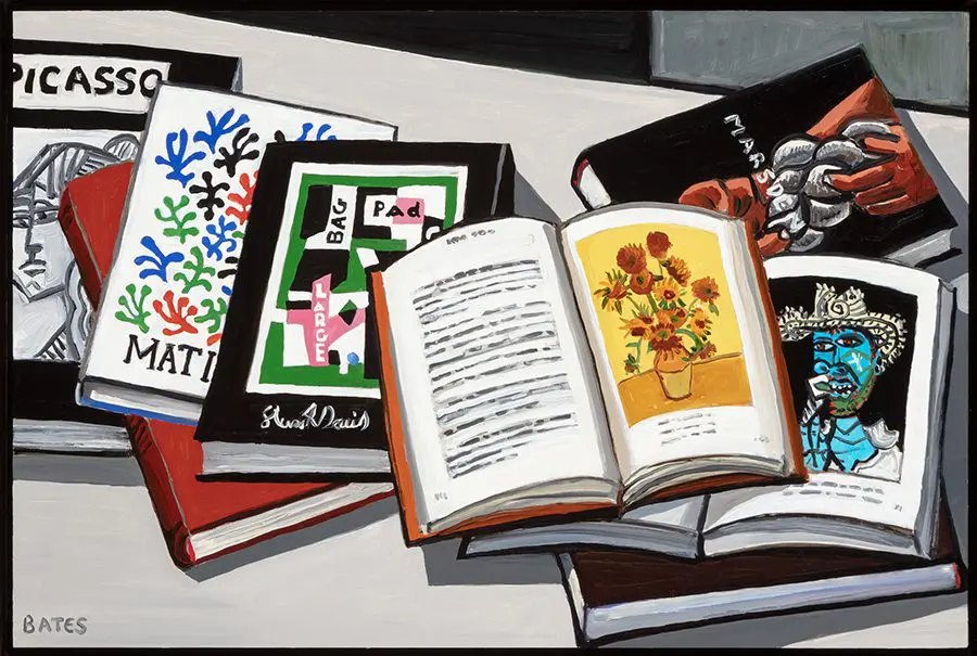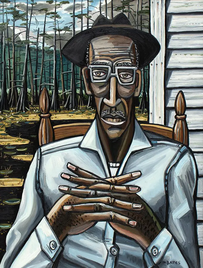 David Bates, an artist of remarkable technical facility and considerable art historical awareness, mixes classical art references with influences from Southern folk art in paintings, sculpture and reliefs that range from landscapes to portraits to still life. Originally fascinated with the light, water and wildlife of the lakes of Arkansas and particularly the Texas Gulf Coast David Bates compositions are done in a direct, concise manner that is subtly complex. The artist captures both the humor and pathos of his subject matter. David Bates has achieved a national reputation for the visual sophistication and emotional strength of his art.