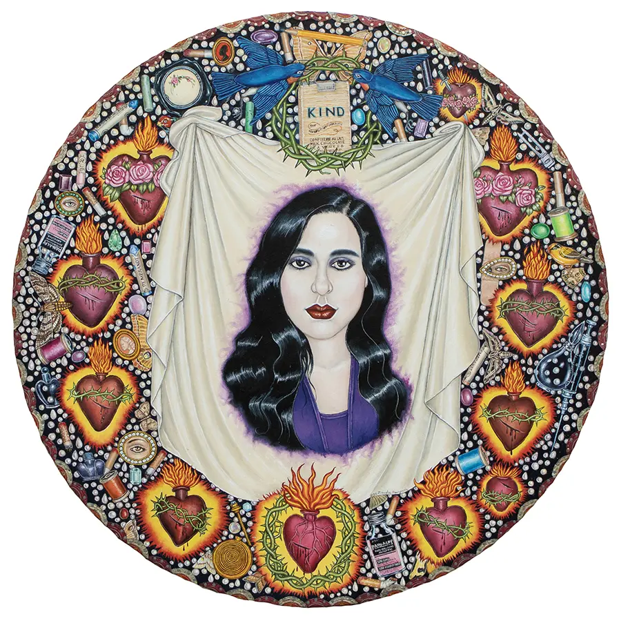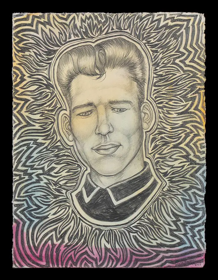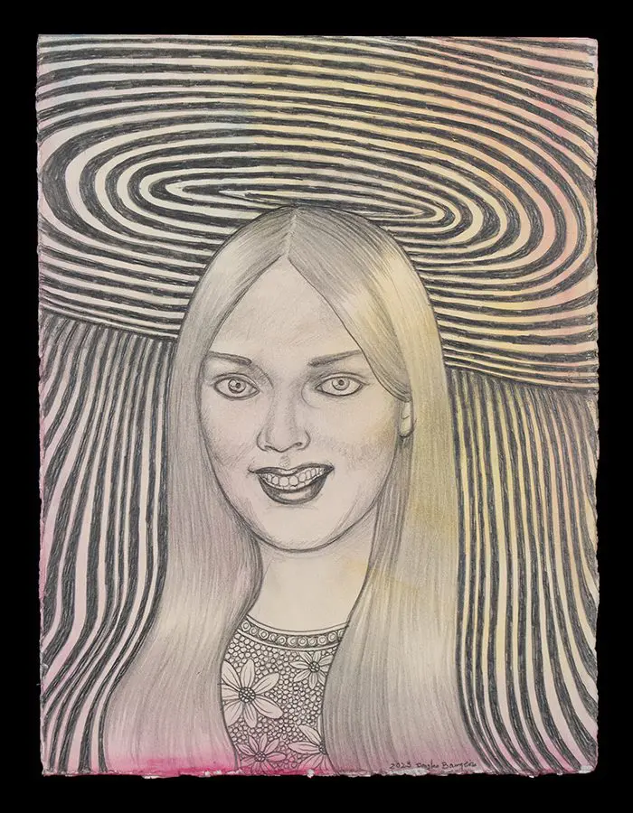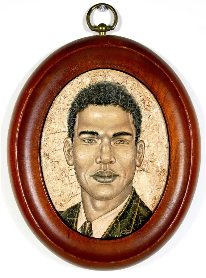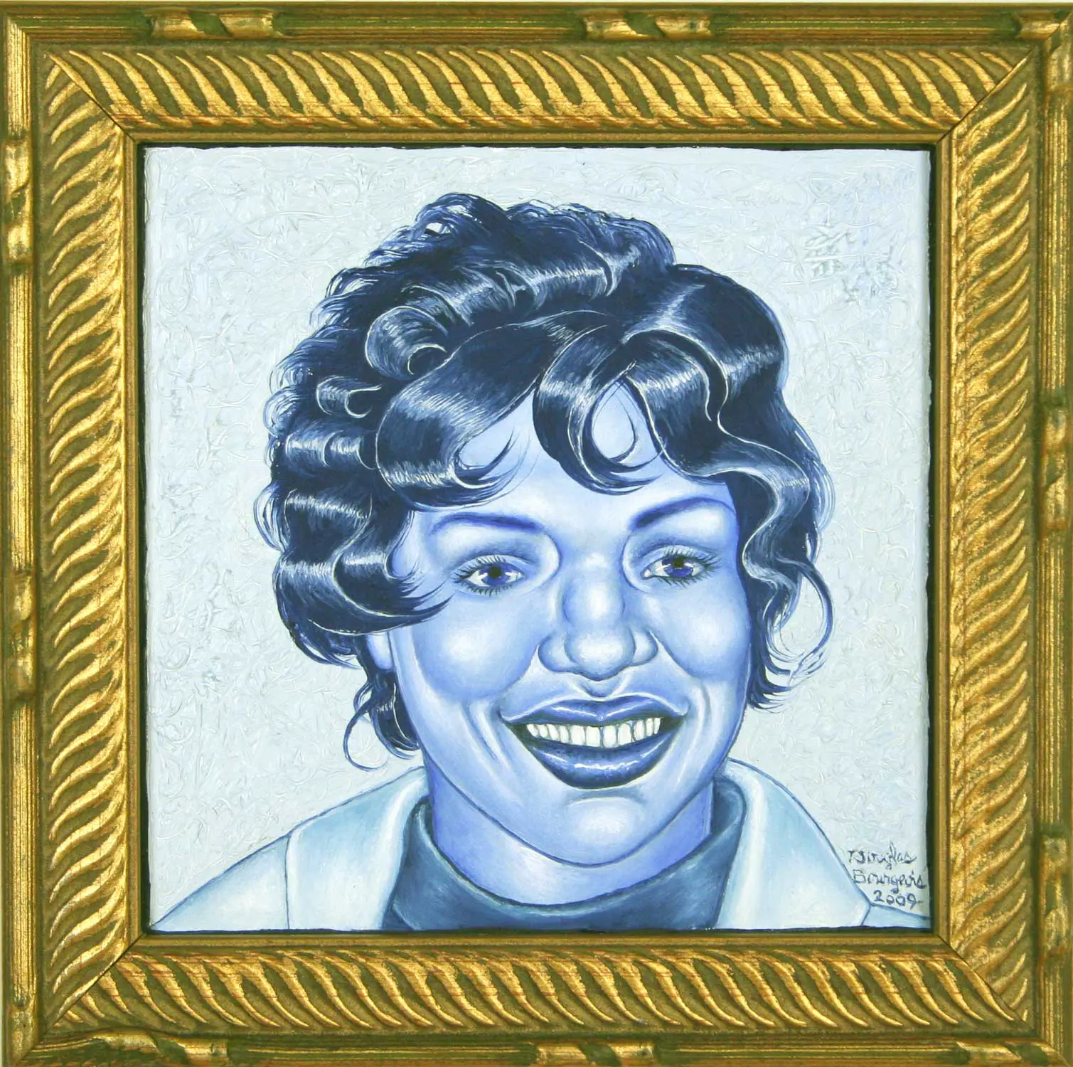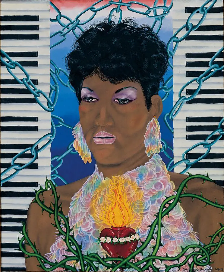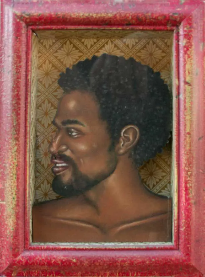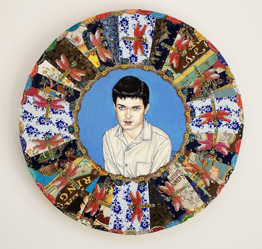 The small-scale figurative oil paintings of Douglas Bourgeois are enigmatic situations featuring one or two people in heightened landscapes or interiors. Some of the paintings are fictional portraits of unknown subjects looking at the viewer. Others are biographical fantasies, tributes to obscure recording artists. Inspirations are Deep Soul and Gospel music, primitive rock and roll, vernacular religious imagery, and discarded paper ephemera. The overwhelming natural landscape of South Louisiana, a beautiful vanishing Eden, is a primary influence. A connecting thread in the paintings and collages is the juxtaposition of the degraded and the sacred, light and darkness, the mundane and the transcendent.