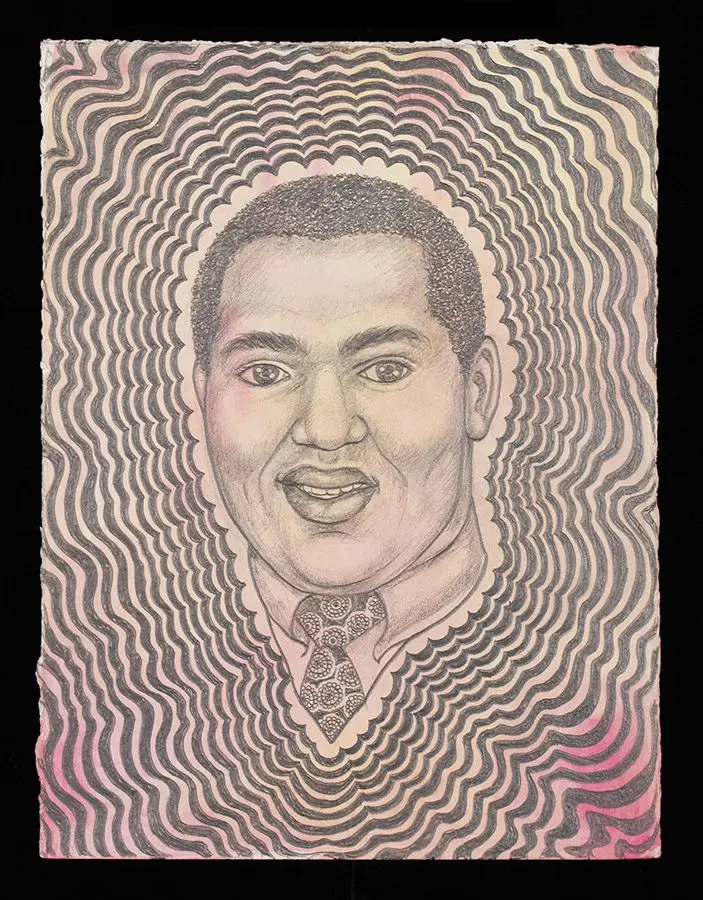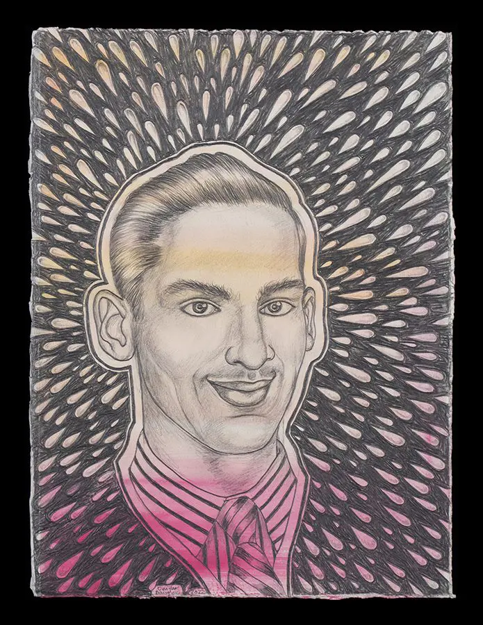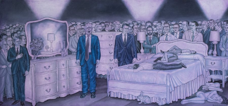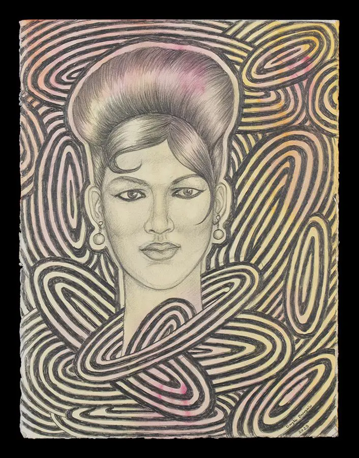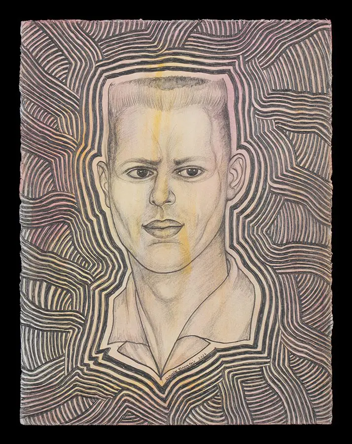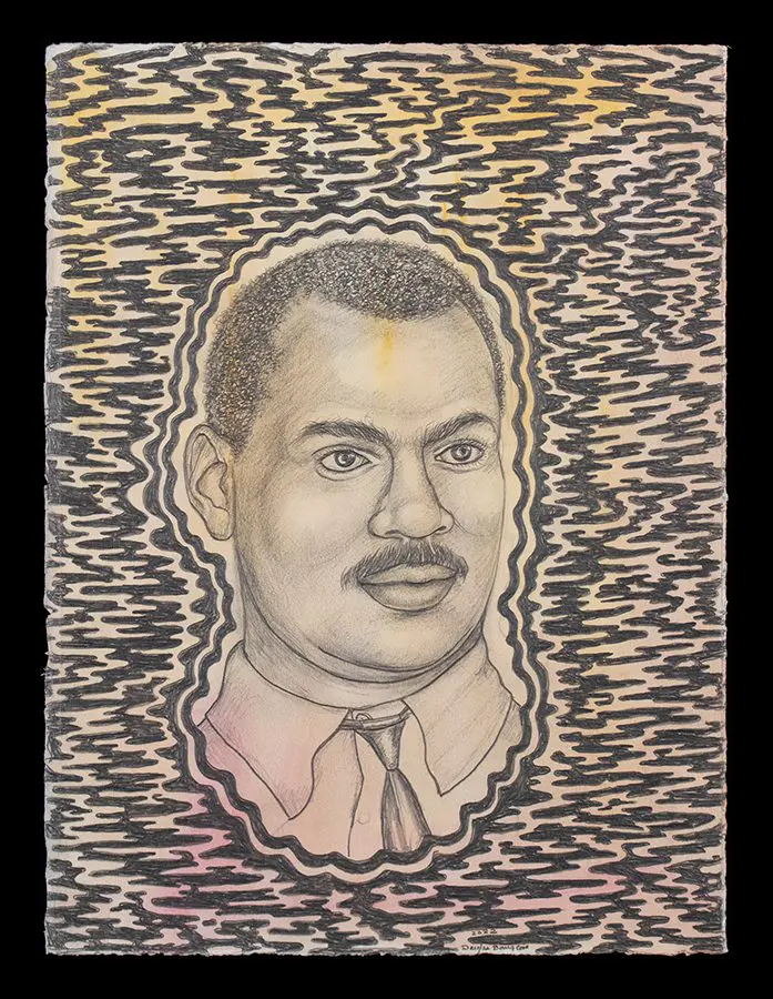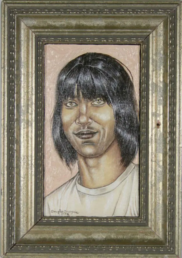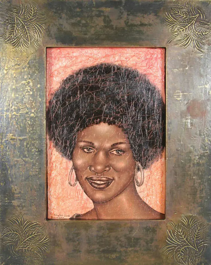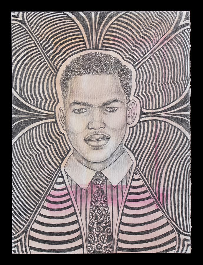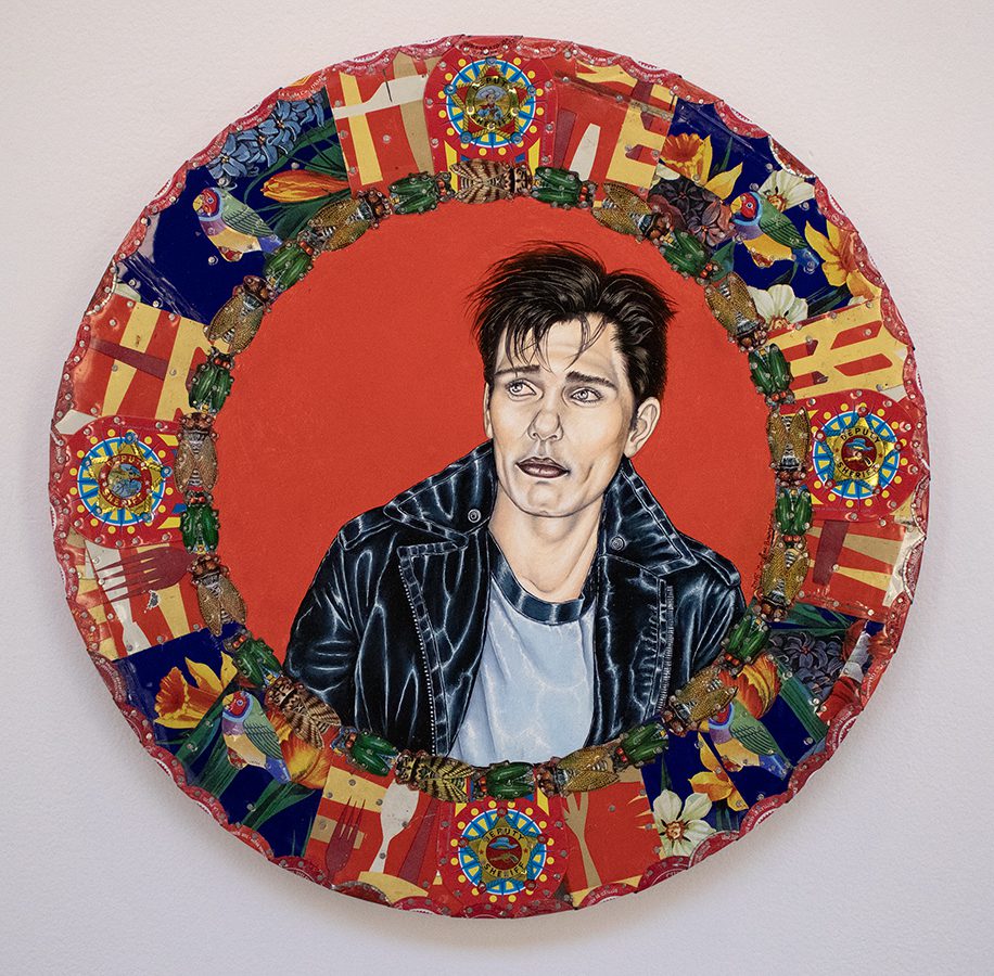 The small-scale figurative oil paintings of Douglas Bourgeois are enigmatic situations featuring one or two people in heightened landscapes or interiors. Some of the paintings are fictional portraits of unknown subjects looking at the viewer. Others are biographical fantasies, tributes to obscure recording artists. Inspirations are Deep Soul and Gospel music, primitive rock and roll, vernacular religious imagery, and discarded paper ephemera. The overwhelming natural landscape of South Louisiana, a beautiful vanishing Eden, is a primary influence. A connecting thread in the paintings and collages is the juxtaposition of the degraded and the sacred, light and darkness, the mundane and the transcendent.