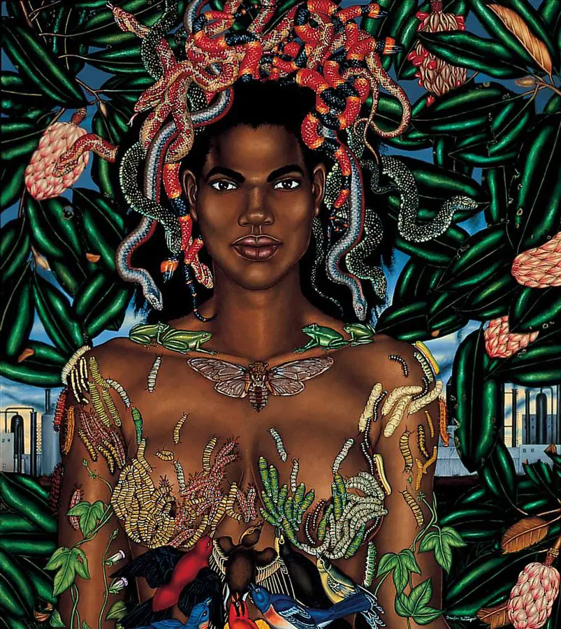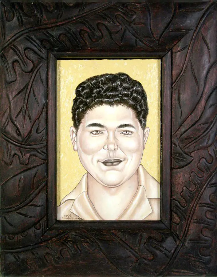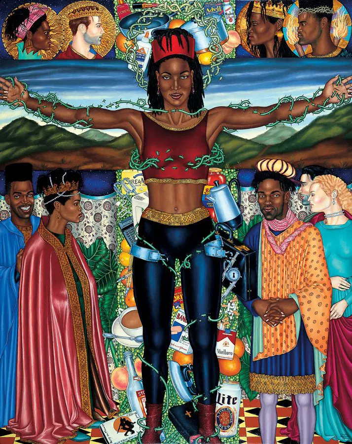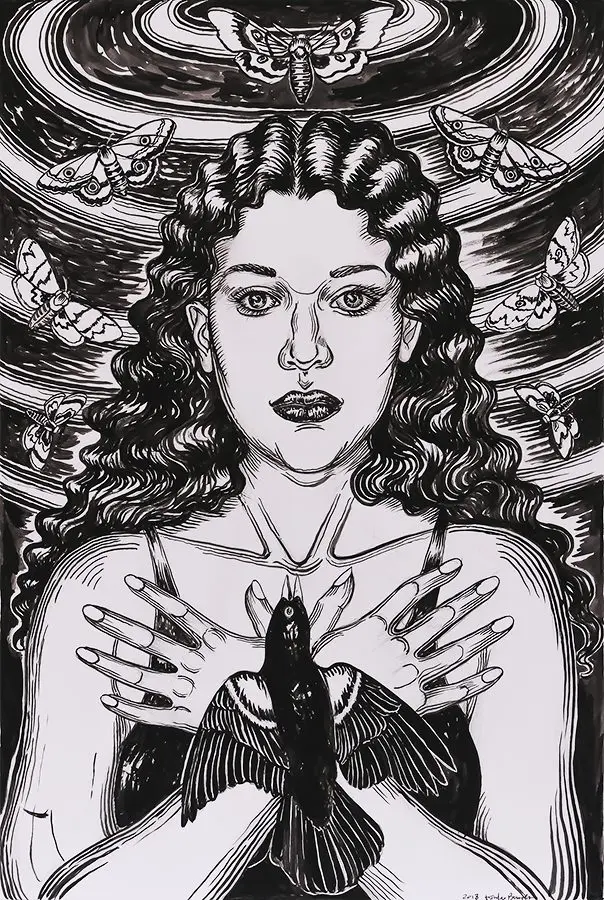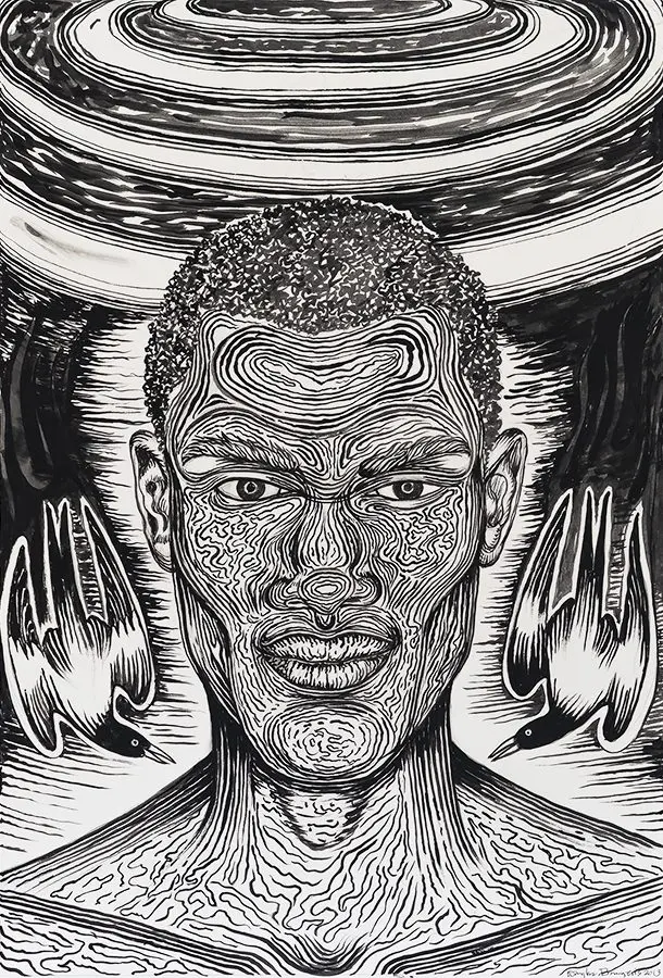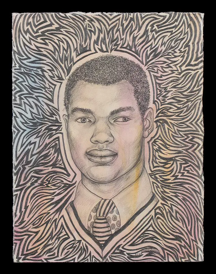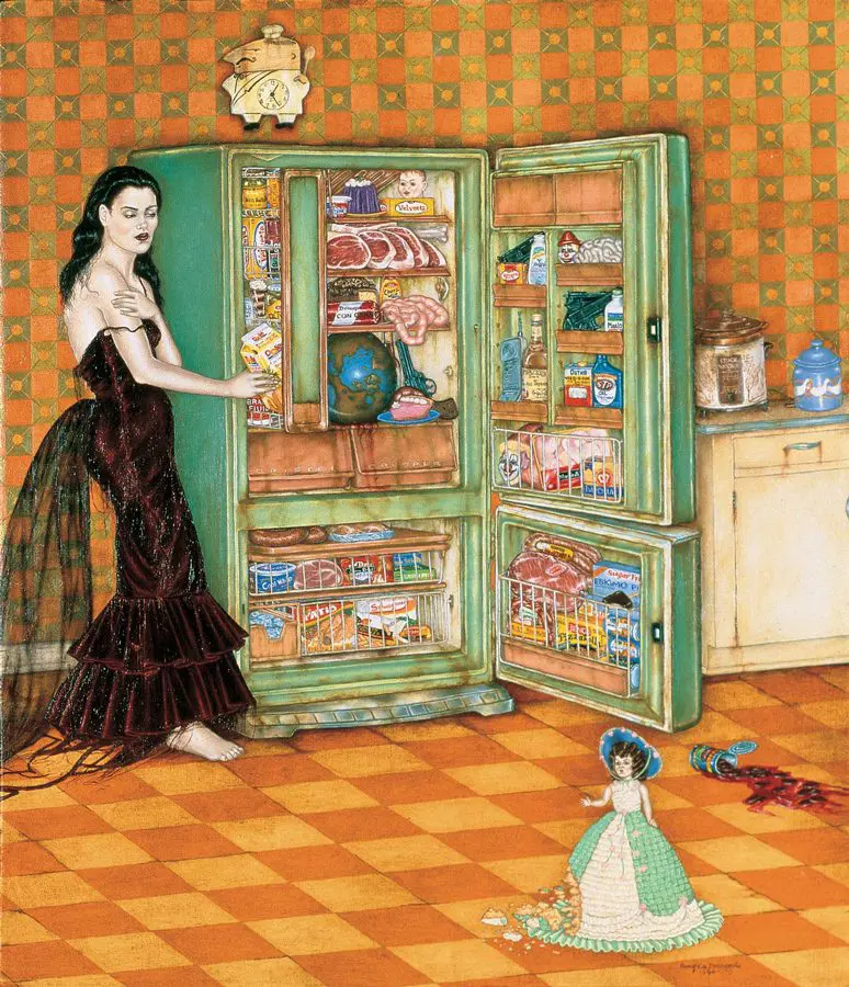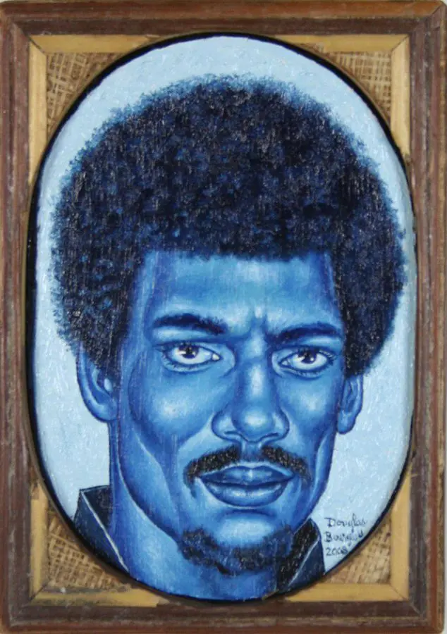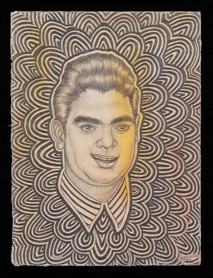 The small-scale figurative oil paintings of Douglas Bourgeois are enigmatic situations featuring one or two people in heightened landscapes or interiors. Some of the paintings are fictional portraits of unknown subjects looking at the viewer. Others are biographical fantasies, tributes to obscure recording artists. Inspirations are Deep Soul and Gospel music, primitive rock and roll, vernacular religious imagery, and discarded paper ephemera. The overwhelming natural landscape of South Louisiana, a beautiful vanishing Eden, is a primary influence. A connecting thread in the paintings and collages is the juxtaposition of the degraded and the sacred, light and darkness, the mundane and the transcendent.