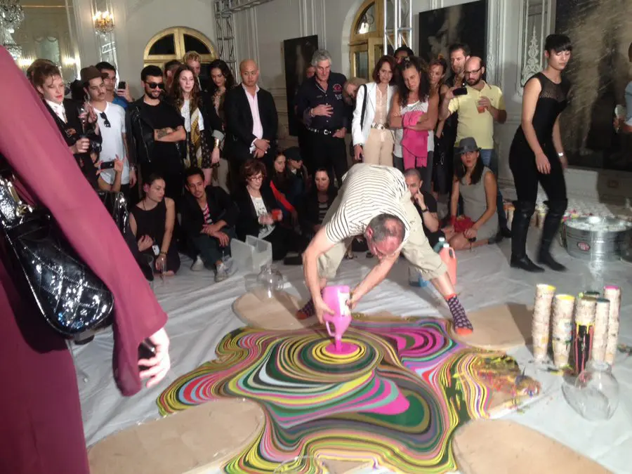 New York-based Holton Rower creates paintings with a simple yet incredibly beautiful process resulting in incredible color combinations that can be stunningly psychedelic and completely hypnotic. He directs and collaborates with the force of nature leaving an element of the artistic process to the effects of gravity.