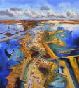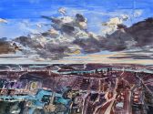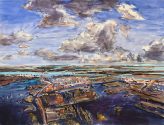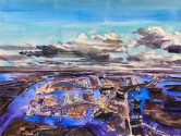 John Hartman, one of Canada’s most renowned contemporary painters, conceives of cities not as man-made anomalies but rather as provocative landscapes. With a unique and vibrant color palette and astral-like perspective, he captures the essence and lifeblood of cities, particularly those with complex waterfronts.