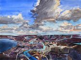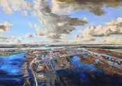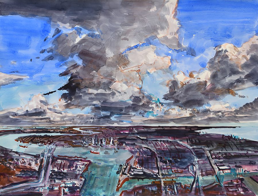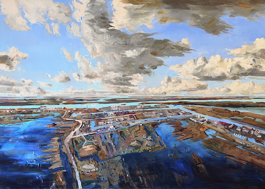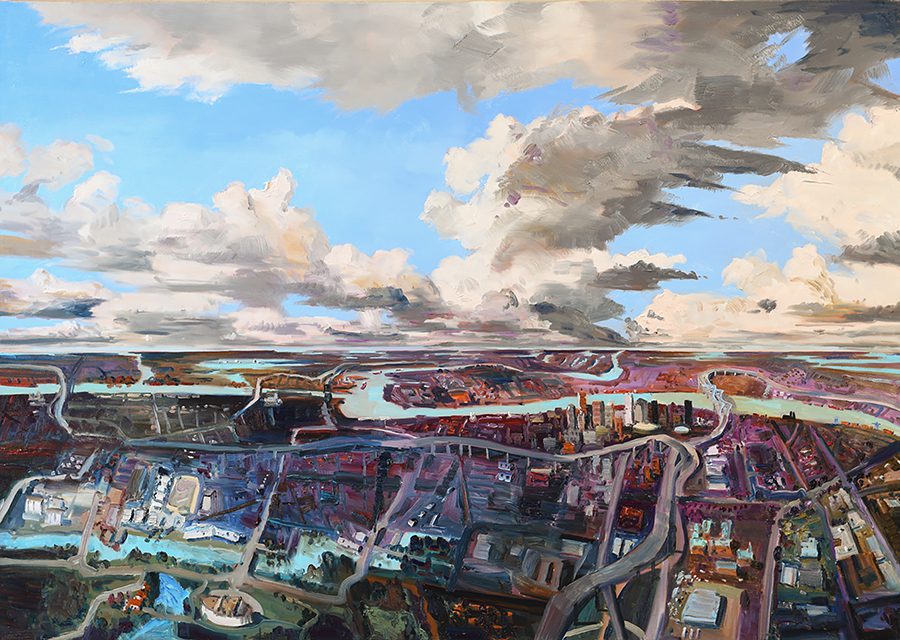 John Hartman was born in 1950 in Midland, Ontario, and studied Fine Art at McMaster University under George Wallace. In 2003, he began to paint aerial views of cities and these paintings made up the exhibition and book Cities, which toured Canada and internationally from 2007 to 2009. Hartman is a past finalist for the Premier’s Award for Excellence in the Arts and the recipient of multiple grants from the Canada and Ontario Arts Councils. His work is in the collections of over thirty important public institutions including the Art Gallery of Ontario, the National Library of Canada, the University of Lethbridge Art Gallery, the Mendel Art Gallery and the Art Gallery of Newfoundland and Labrador. John Hartman is based in Penetanguishene, Ontario and frequently travels across North America and Europe documenting landscapes, cities and their stories for his paintings.