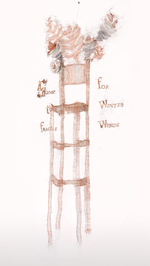 Copper foil, organza, wire, thread, paint, micron pen, mulberry paper
