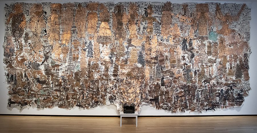 Copper foil, organza, wire, paint, micron pen, mulberry paper