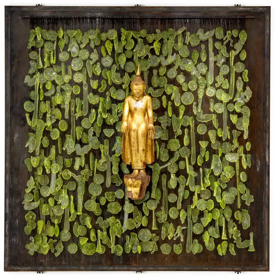 Mitchell Gaudet regards himself primarily as a glass caster who ladles molten glass out of a furnace and into a mold. He likes to make objects of desire with “a funky historical presence to them.” Mitchell Gaudet incorporates found objects into his work often indirectly by the abstraction of the object in the casting process. The artist approaches his work in a narrative manner telling a story with both his shows and his individual pieces.
