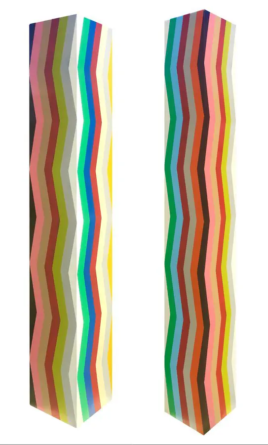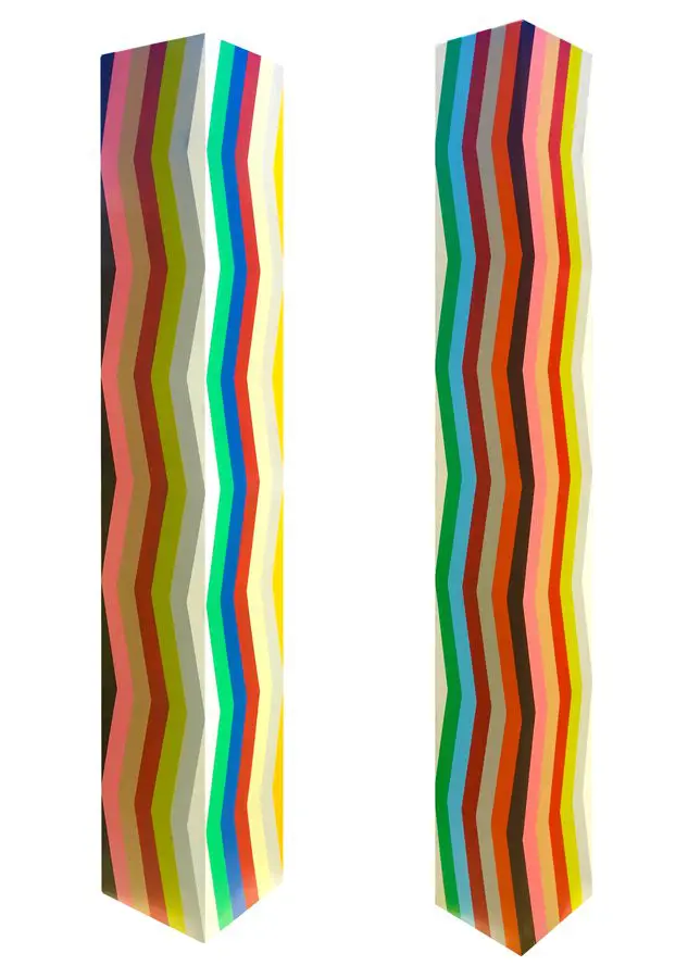 Inspired by the minimalist work of Agnes Martin and Donald Judd, Pard Morrison has described his work, which he terms “hybrids,” as “an exploration of a hypothetical conversation between Donald Judd and Agnes Martin.” Constructed from box-like aluminum fabrications that are then patinated by repeatedly baking the finish, Morrison’s “hybrids” are graphic sculptural compositions that function visually as paintings. Morrison characterizes his work as “Human Minimalism.” He believes the “fusion of surface and medium is an applicable metaphor for the human condition.” For Morrison, the physical property of the metal boxes suggests human scale, while ethereal surfaces suggest the human spirit.