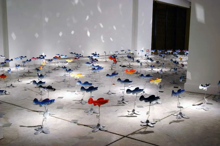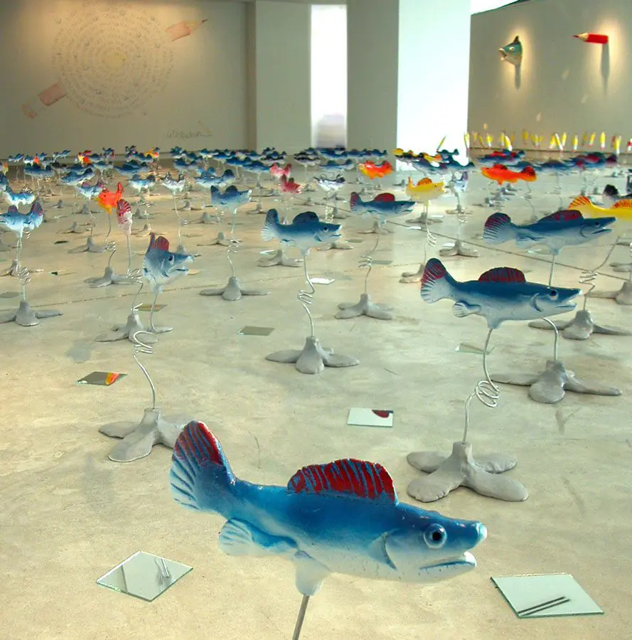 Steve Rucker was a sculptor and painter specializing in creating imaginative installations. Originally from southeast Tennessee, Rucker has stated, “My work is directly inspired by the Southern landscape, the work of visionary outsiders, agriculture, social and environmental ironies, and any music with a good beat.” Steve Rucker had a solid connection to the crafts tradition, particularly the making of ceramics. His sculptures, paintings, and installations became increasingly narrative usually conveying a penetrating look at what the artist terms “this land of plenty.”