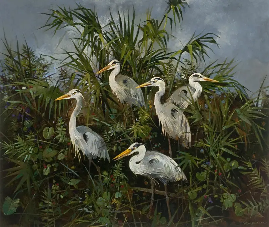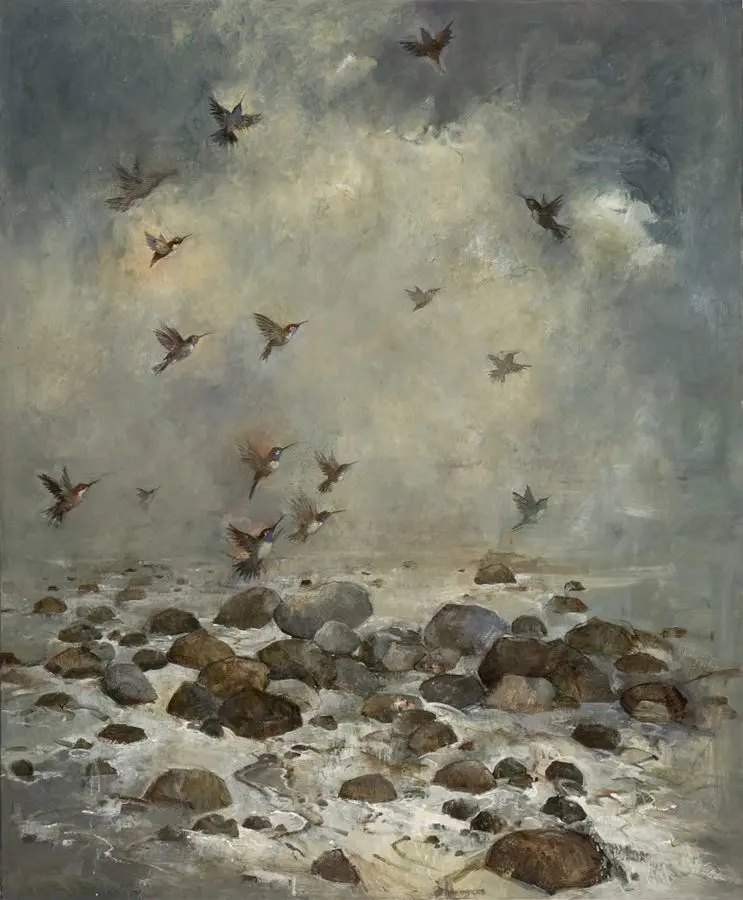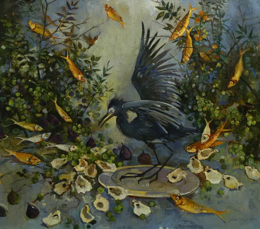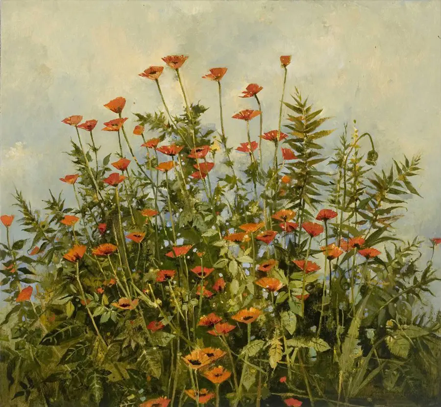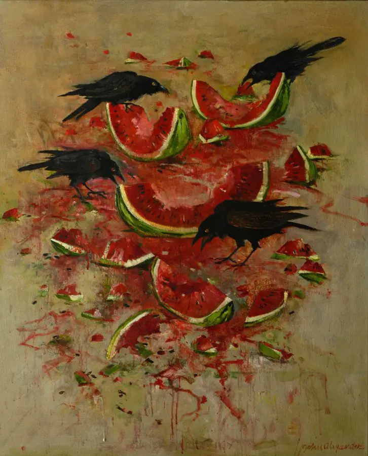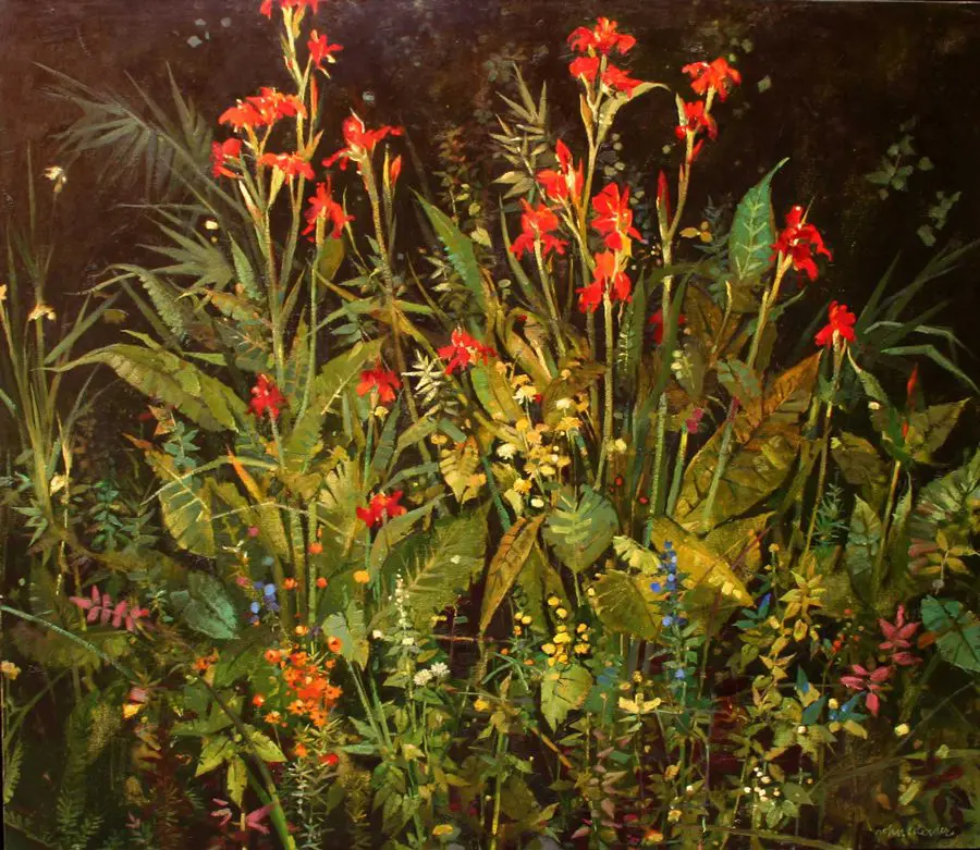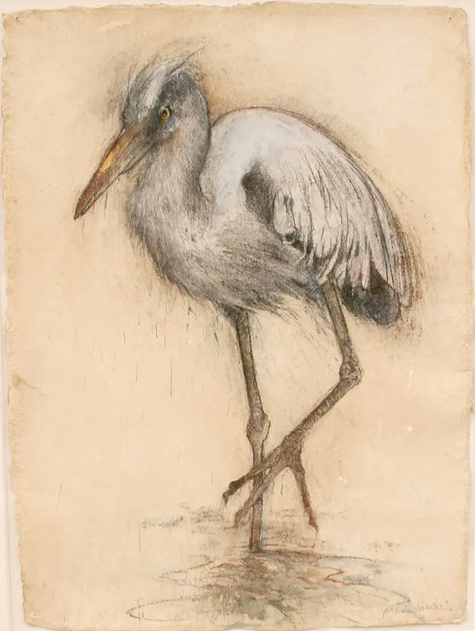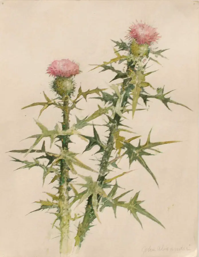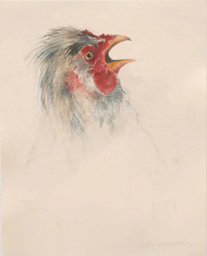 John Alexander’s exhibition features several large-scale paintings that capture a wealth of small details from his close observation and personal engagement with the infinitely rich natural world. The artist’s large oil canvases represent nature as mysterious and not entirely benign. Animals convey startling emotion; blossoms preen and pirouette, revealing the fugitive beauty of their color and shapes. He excels in the exacting medium of watercolor. Particularly in his drawings, Alexander captures clear, distilled essences. Elaborately rendered in charcoal, pastel and watercolor on hand-made paper, Alexander’s intimately-scaled animal, fish and flower portraits are executed with reverence and psychological insight.