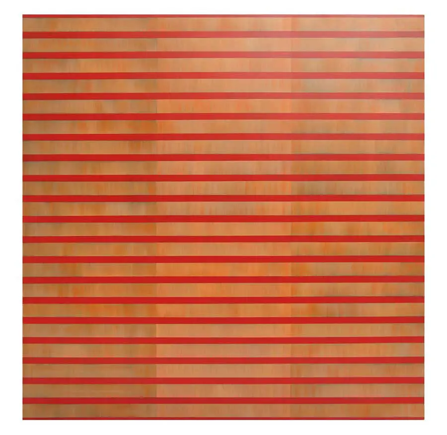 Inspired by the minimalist work of Agnes Martin and Donald Judd, Morrison has described his work, which he terms “hybrids,” as “an exploration of a hypothetical conversation between Donald Judd and Agnes Martin.” Constructed from box-like aluminum fabrications that are then patinated by repeatedly baking the finish, Morrison’s “hybrids” are graphic sculptural compositions that function visually as paintings. Morrison characterizes his work as “Human Minimalism.” He believes the “fusion of surface and medium is an applicable metaphor for the human condition.” For Morrison, the physical property of the metal boxes suggests human scale, while ethereal surfaces suggest the human spirit.