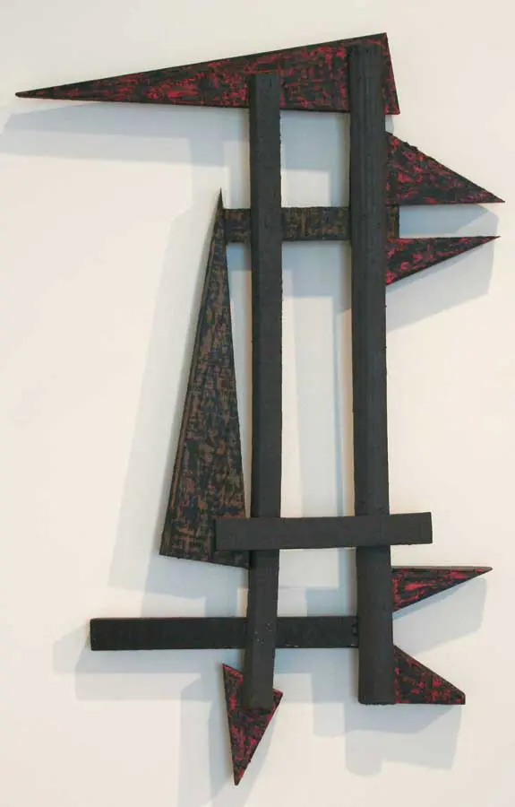 Whiteman achieves his unique surfaces by manipulating the material in every manner possible, soaking, crumbling and embedding the paper with color until a complete new object is born. His paper wall pieces unite simple yet powerful forms with seductive color. In Whiteman’s creations the paper does not function as a surface for the work but actually becomes the work itself. Materials and texture and muted color images integrated in the ground are the cornerstone of his work. The paper and canvas constructions fuse elements into commanding primal images.