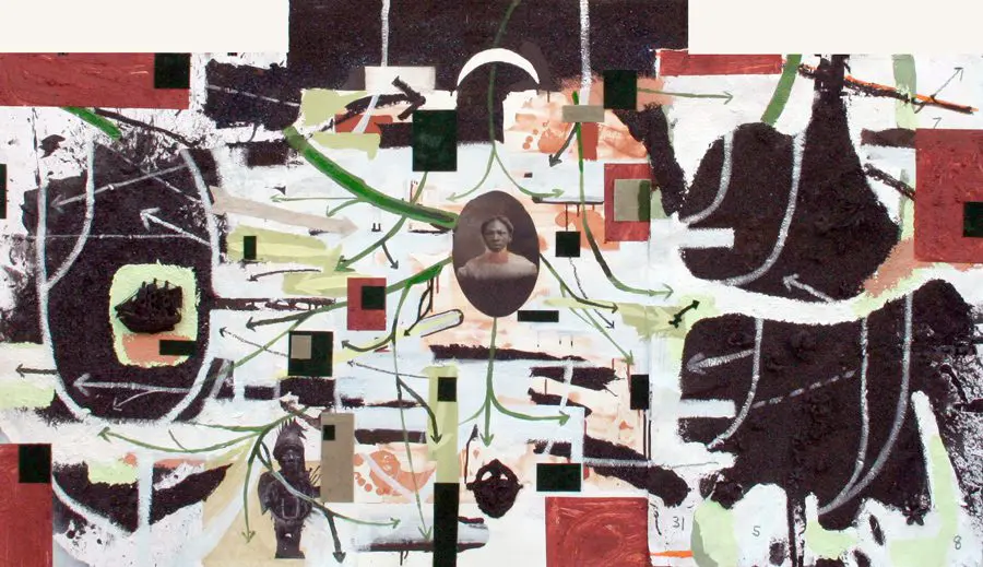 Bailey’s paintings and sculptures are multi-layered narratives that probe both the history of African-Americans as well as the artist’s own personal experiences and influences. He uses his archive of ancestral photographs as collage materials in several of the works in the exhibition. Bailey’s recent work particularly references slavery, the Underground Railroad and the vision of Marcus Garvey.