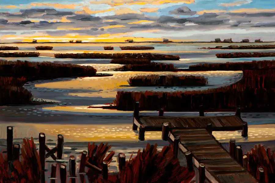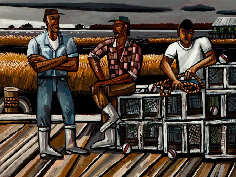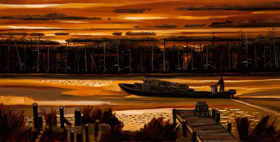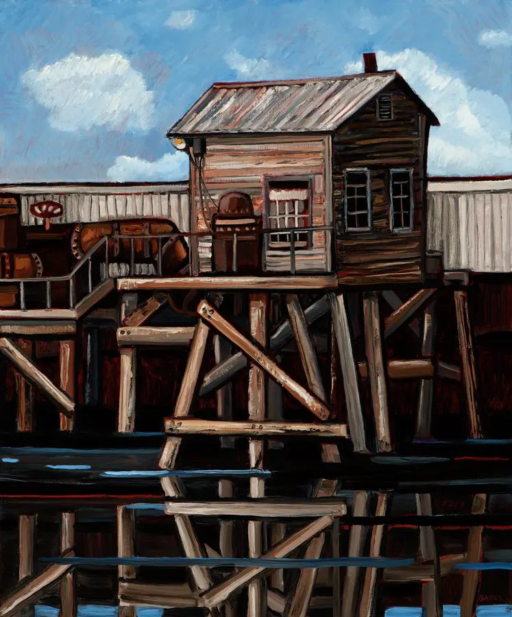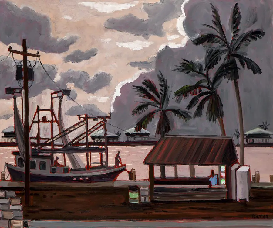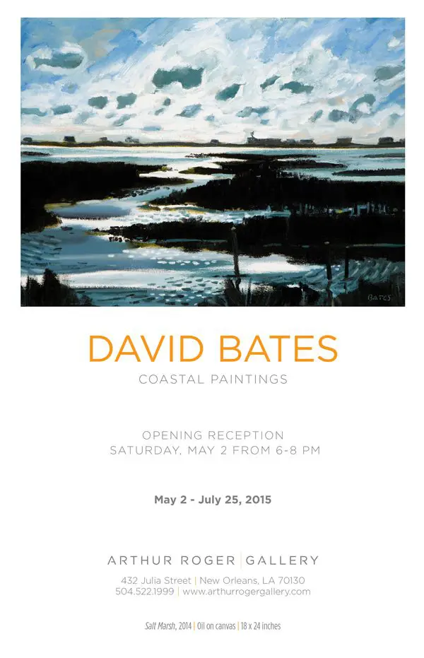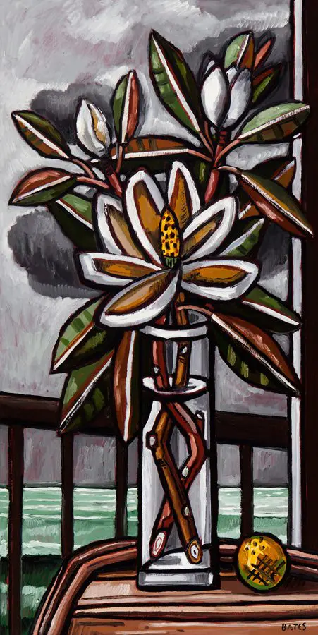 Coastal Paintings is David Bates’ eighth exhibition with the gallery and consists of small- to large-scale oil paintings on canvas and panel. Employing his distinctive bold style, Bates continues to document the people and landscapes of the Gulf Coast. His portraits of fishermen and coast natives avow his esteem for his subjects and their absolute fortitude. Like them, his striking landscapes evoke a quiet solitude, yet often with hints of recovery from or preparation for more ominous times. Equally resilient and captivating are the Magnolias and other flora realized by his characteristic and masterful thick, lush strokes.