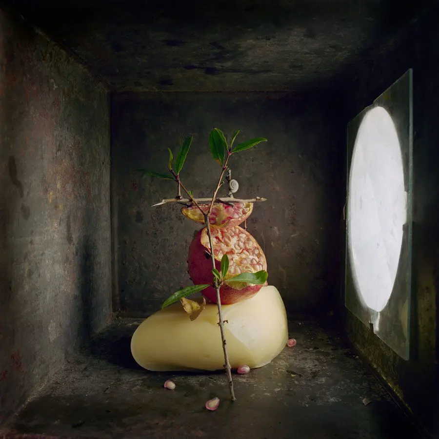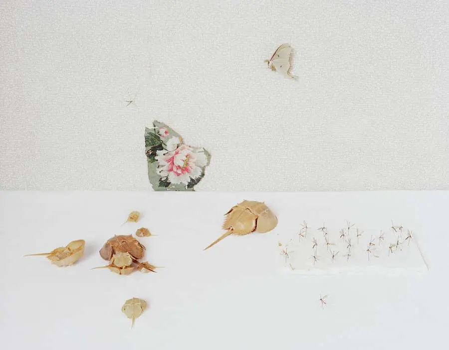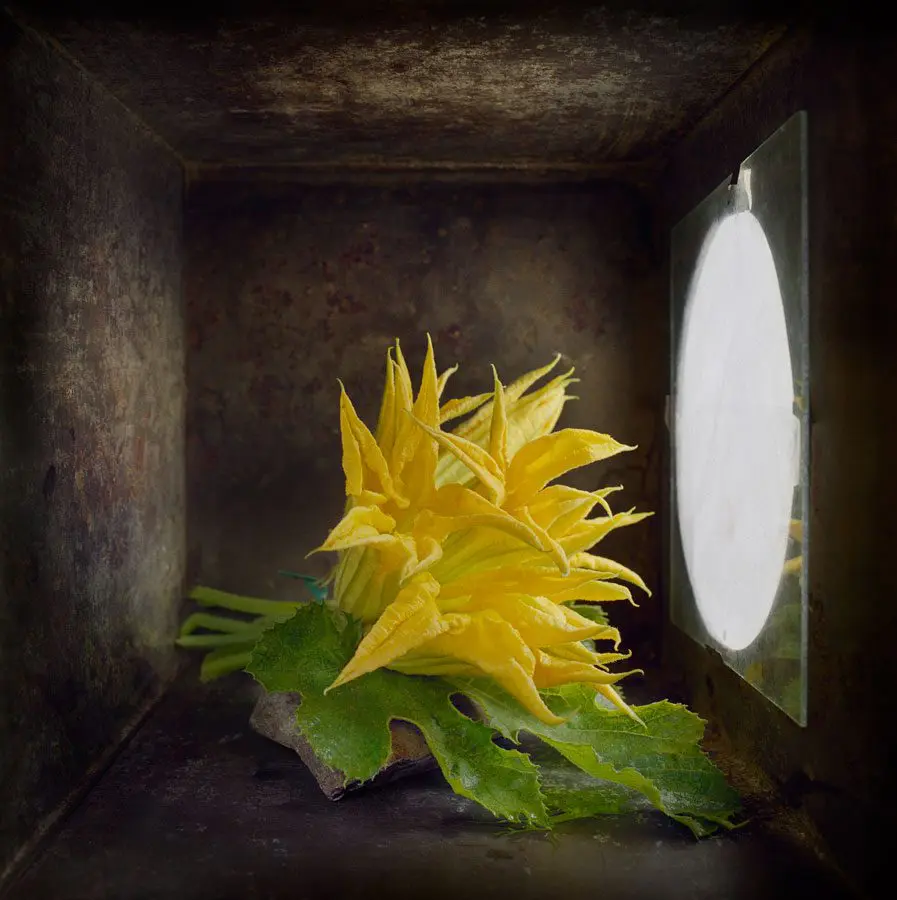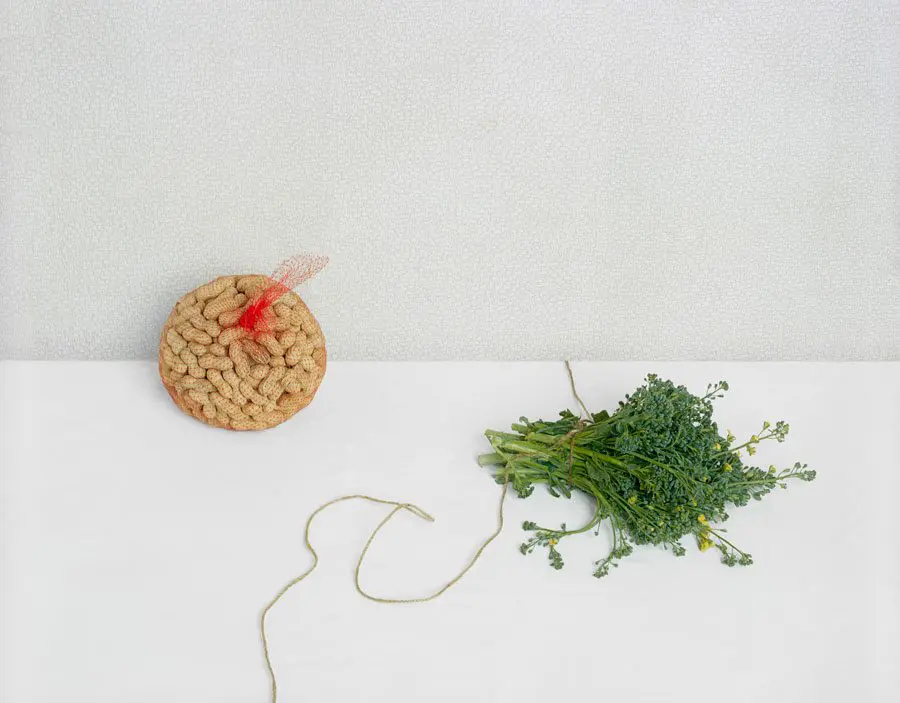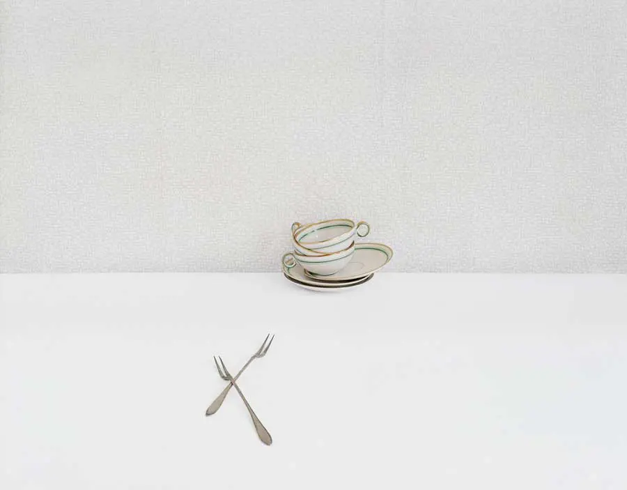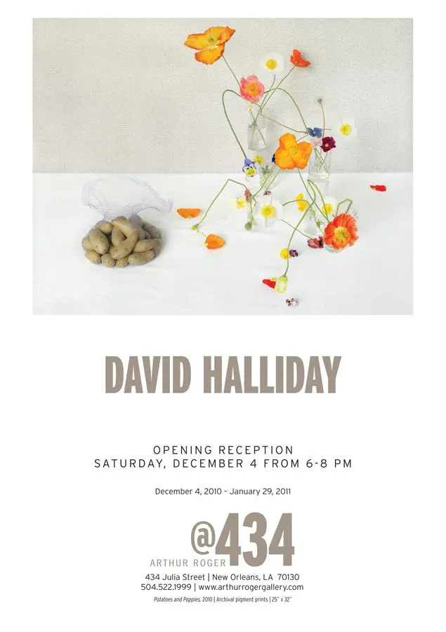 In this exhibition, David Halliday presents photographs that appear visually brighter and lighter in energy than his more intimate and formal sepia-toned photographs. Halliday floods images in this series with head-on light causing the shadows to almost disappear and the picture plane to flatten. The illusion of depth and three-dimensionality become obscured or even obliterated, allowing the objects to appear as if they are floating in space. Texture, pattern, shape and color are the main ingredients in these loose compositions where the objects are free to play against and with one another.