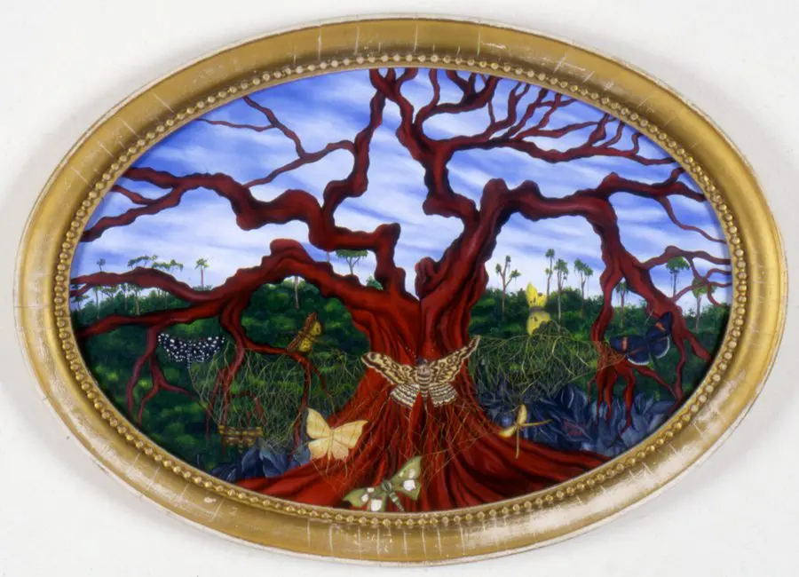 Jacqueline Bishop tells a story of quiet destruction in her series of paintings titled Century of Silence. The collection of works at the Arthur Roger Gallery serve as a visual travelogue of the artist’s journeys into the rainforests of South and Central America, a personal and prophetic commentary on the grim reality of man’s presence in the fragile environment.