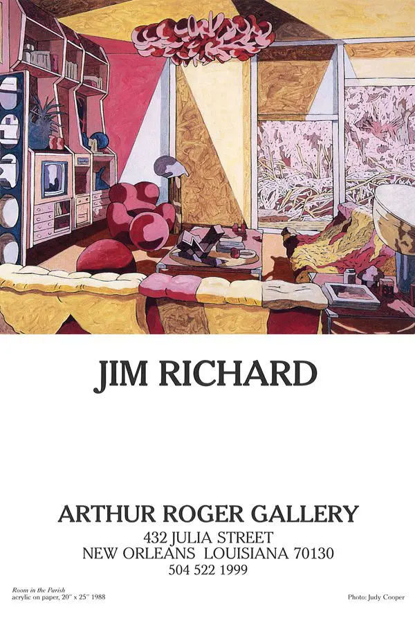 The Arthur Roger Gallery is pleased to present an exhibition of work by Jim Richard. The exhibition will be on view at Arthur Roger Gallery, located at 432 Julia Street, from April 1– May 3, 1989. The gallery will host an opening reception Saturday, April 1 from 6-8 pm.