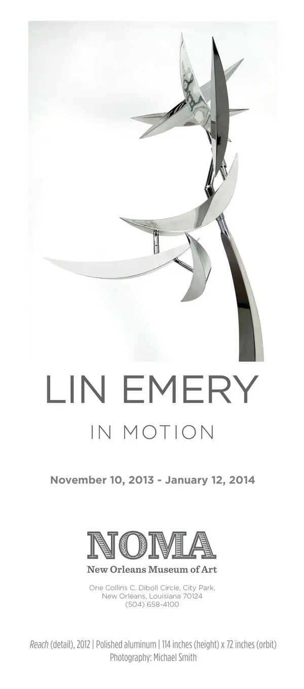 To celebrate Lin Emery’s artistic accomplishments and contributions to the community, NOMA is highlighting a selection of her recent pedestal and kinetic sculptures in the second floor Lupin Gallery.