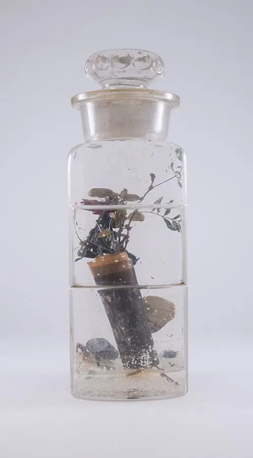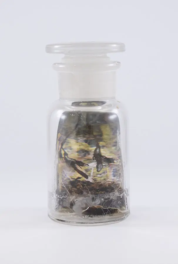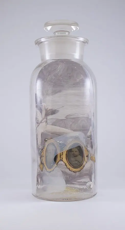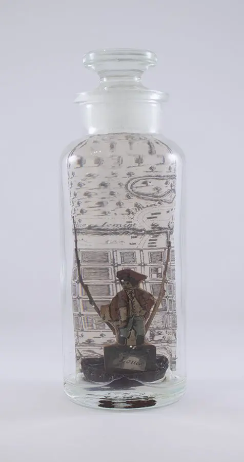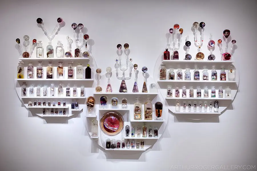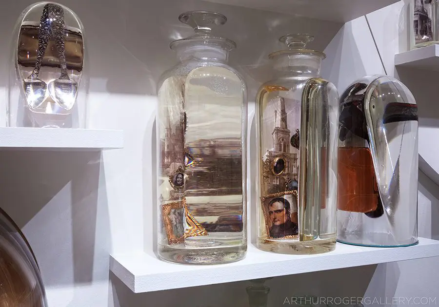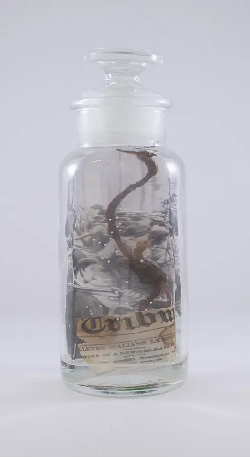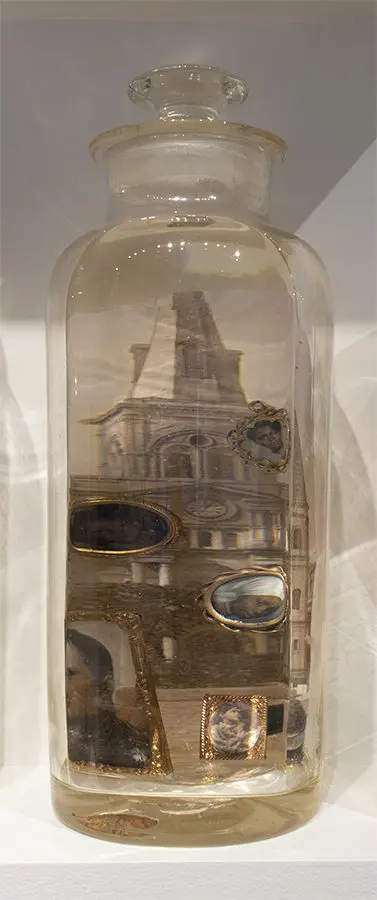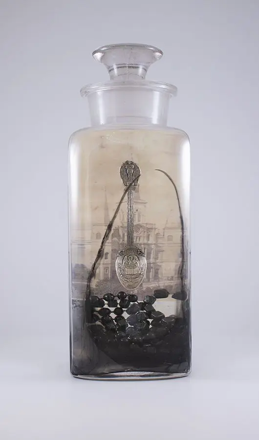 In Now She Sings, Now She Sobs, Now She Sings artist Stephen Paul Day’s love for distilling historical content, cultural antiques, and aesthetic alchemy is on display in the exhibition celebrating the unique and complex diversity of the city of New Orleans. The focal point of the exhibition is a wunderkammer (cabinet of curiosities) composed of over 100 apothecary jars containing some distillation based on historical and physical elements that reflect the unique quality of New Orleans. With a nod to the Victorian obsession with vivariums, Stephen Paul Day has bottled the city’s history as if in an alchemist’s studio mixing song and sorrow in a narrative atmosphere.