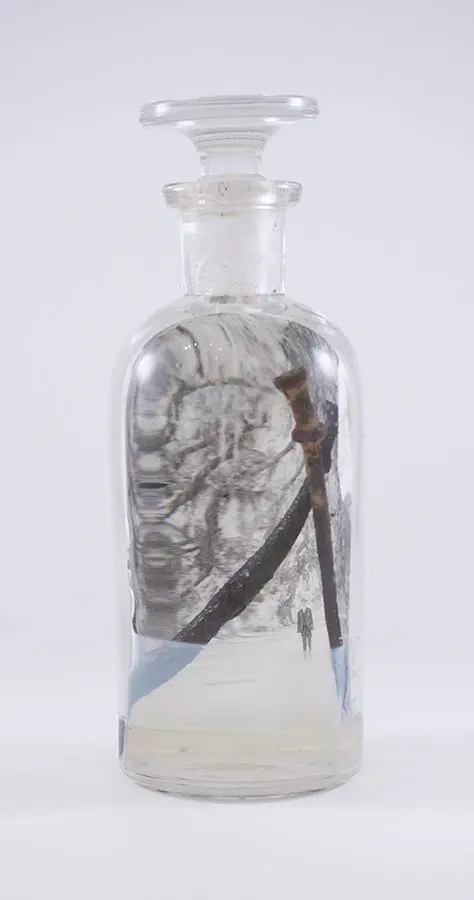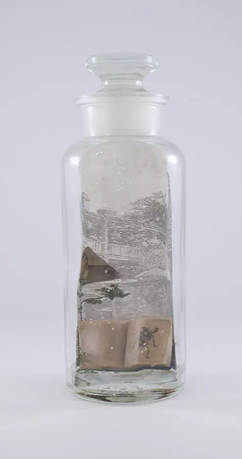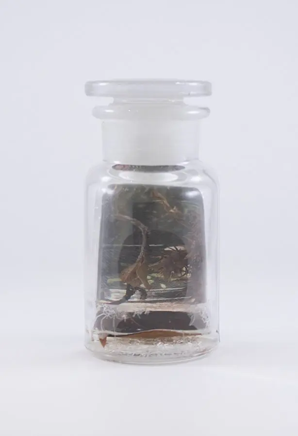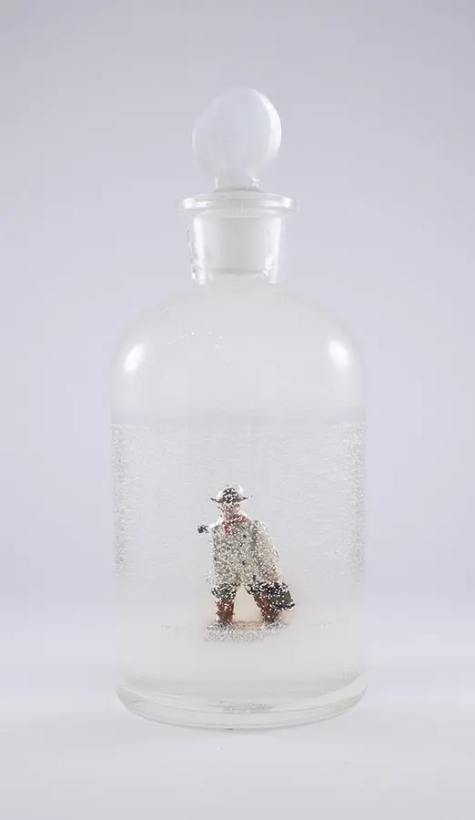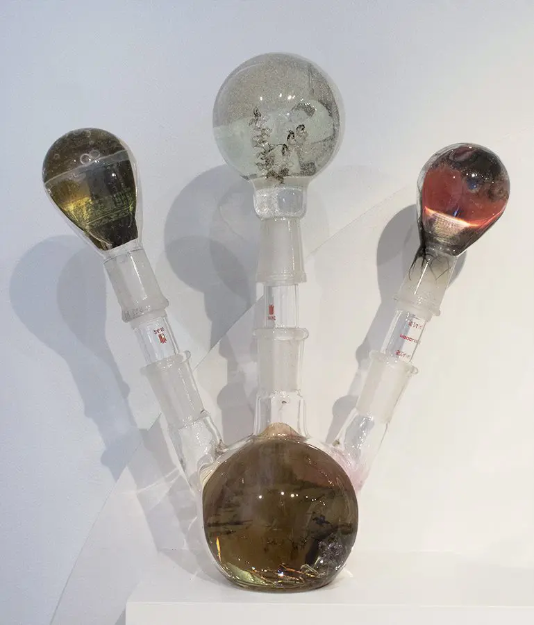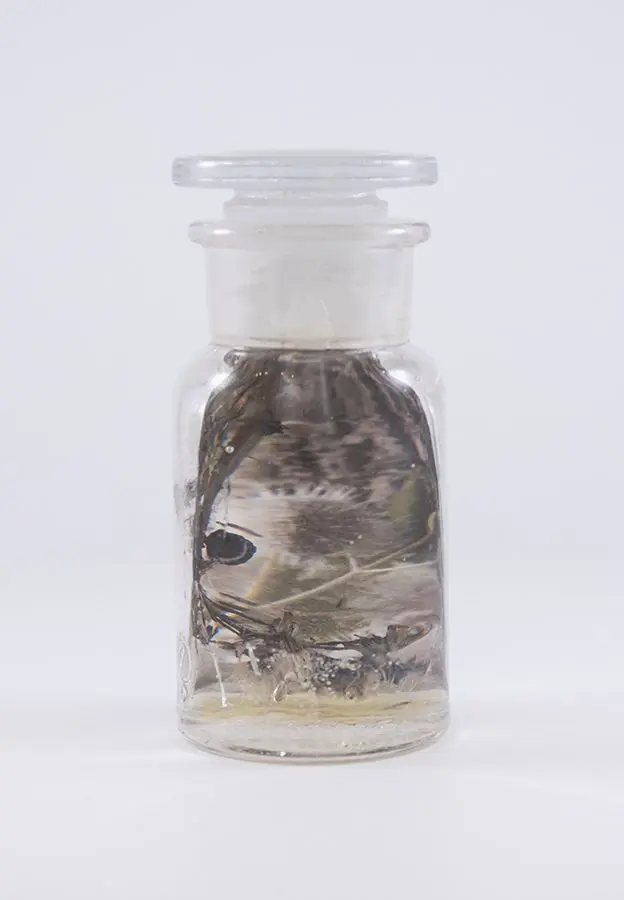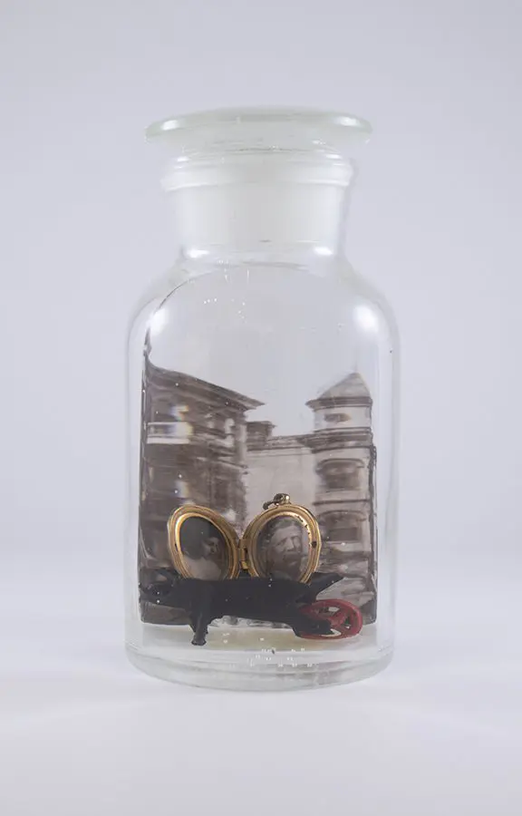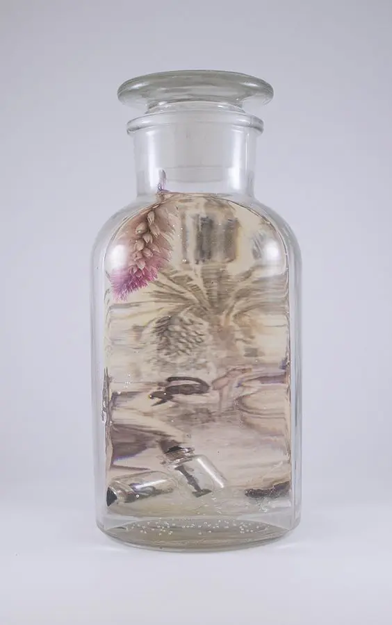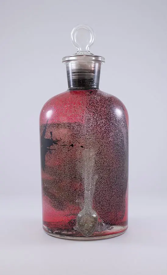 In Now She Sings, Now She Sobs, Now She Sings artist Stephen Paul Day’s love for distilling historical content, cultural antiques, and aesthetic alchemy is on display in the exhibition celebrating the unique and complex diversity of the city of New Orleans. The focal point of the exhibition is a wunderkammer (cabinet of curiosities) composed of over 100 apothecary jars containing some distillation based on historical and physical elements that reflect the unique quality of New Orleans. With a nod to the Victorian obsession with vivariums, Stephen Paul Day has bottled the city’s history as if in an alchemist’s studio mixing song and sorrow in a narrative atmosphere.