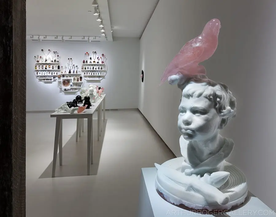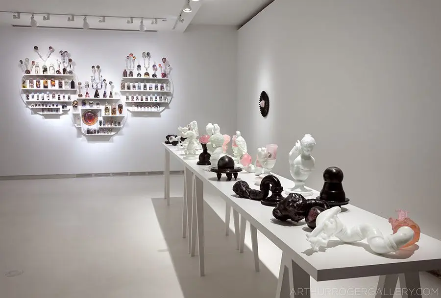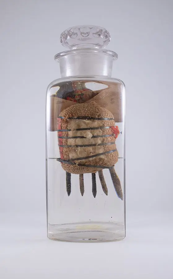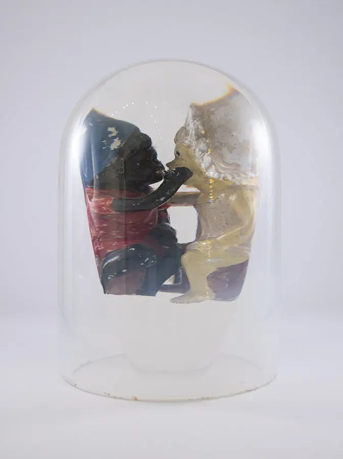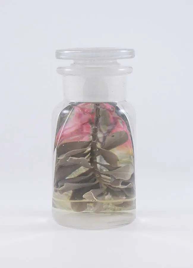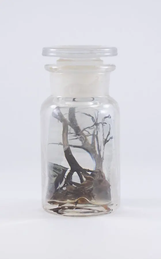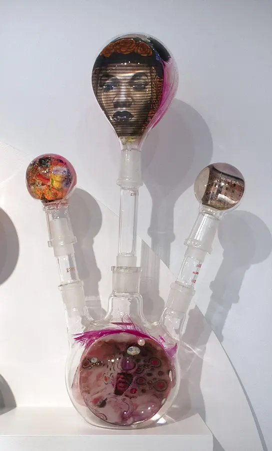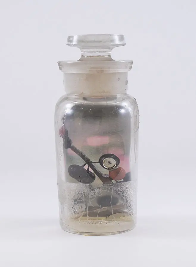 In Now She Sings, Now She Sobs, Now She Sings artist Stephen Paul Day’s love for distilling historical content, cultural antiques, and aesthetic alchemy is on display in the exhibition celebrating the unique and complex diversity of the city of New Orleans. The focal point of the exhibition is a wunderkammer (cabinet of curiosities) composed of over 100 apothecary jars containing some distillation based on historical and physical elements that reflect the unique quality of New Orleans. With a nod to the Victorian obsession with vivariums, Stephen Paul Day has bottled the city’s history as if in an alchemist’s studio mixing song and sorrow in a narrative atmosphere.