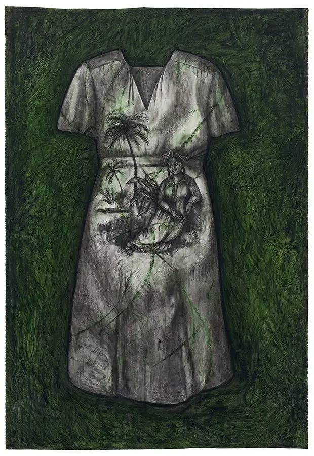 Whitfield Lovell: Marks in Time is the artist’s fourth exhibition with the gallery. Included are a selection of bold assemblages of charcoal drawings on vintage wood paired with multivalent objects collectively illuminating the African American experience. Also exhibited are a group of Lovell’s Hand series and large-scale drawings featuring portraits on clothing. The latter two series are oil stick and charcoal on paper.