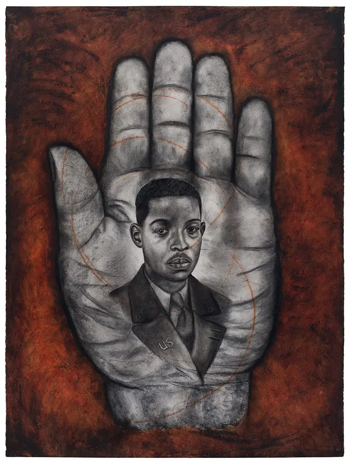 Lovell’s work is inspired by his fascination with history as well as stories told by his grandparents. His portraits are referenced from his large collection of photos of unidentified Black subjects from the the Emancipation Proclamation to the Civil Rights Movement. He states, “The importance of home, family, ancestry feeds my work entirely. African Americans generally were not aware of who their ancestors were, since slaves were sold from plantation to plantation and families were split up.” The men and women featured in Lovell’s work, although with faces often weighted with strife, reveal consummate strength and determination.